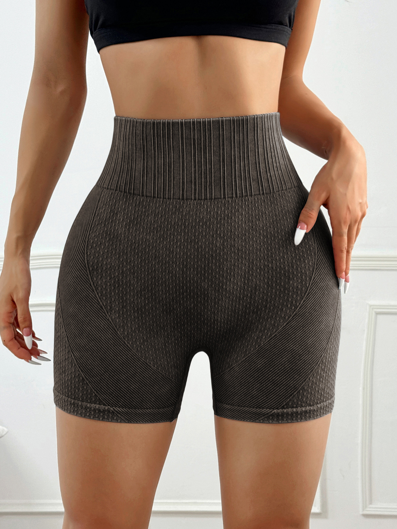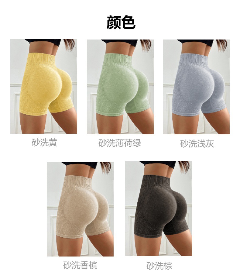 무야오 크로스보더 샌드워시 요가 반바지 하이웨이스트 힙업 피트니스 팬츠 속건성 아웃도어 러닝 스포츠 타이트 쓰리쿼터 팬츠