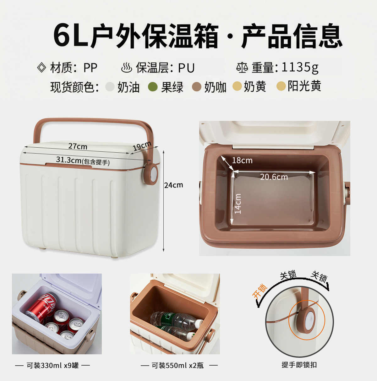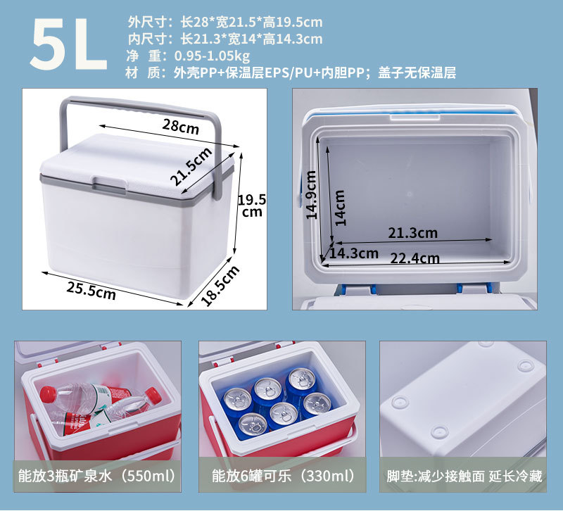 • 5L 주황색 및 흰색 뚜껑 + 얼음주머니 6개 + EPS 재질