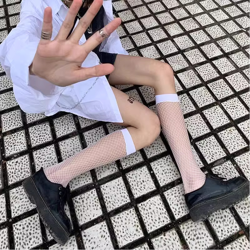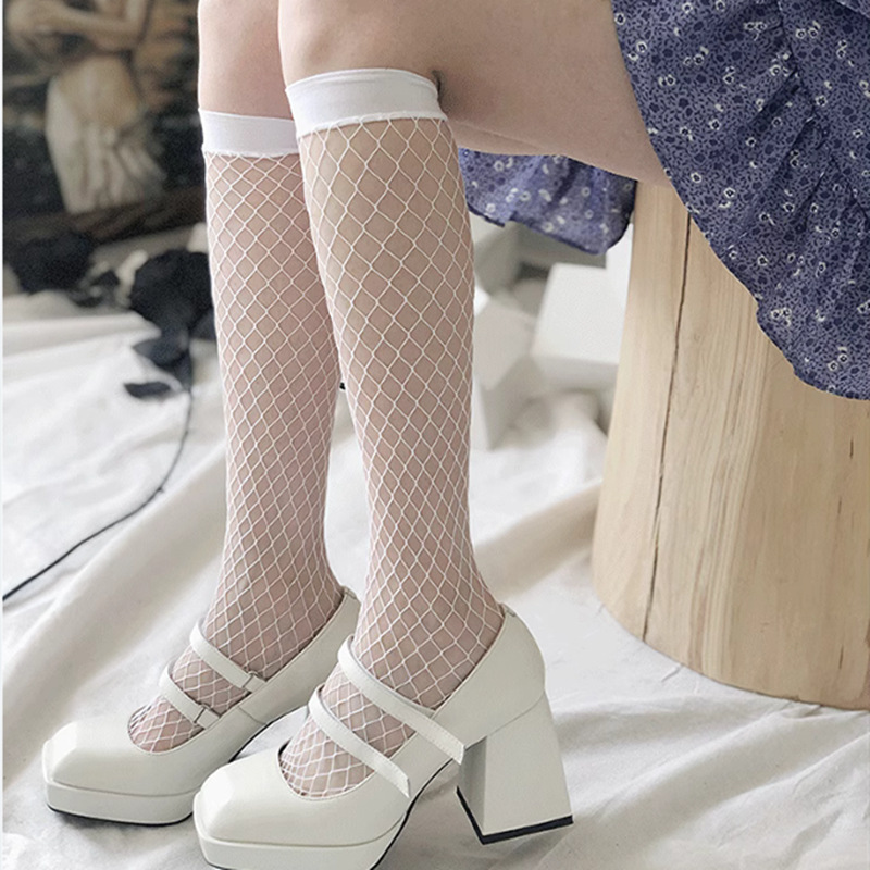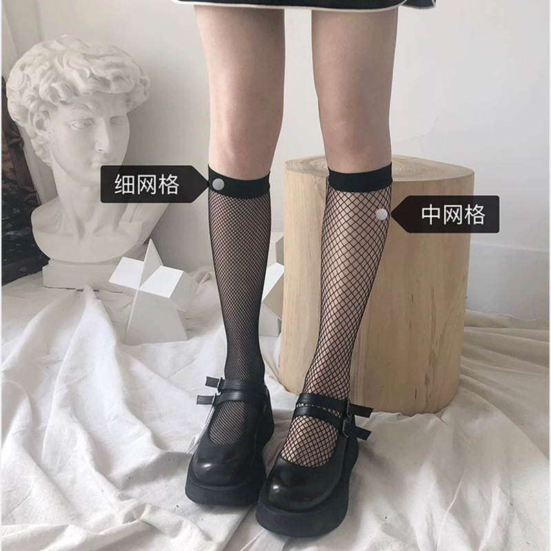 작은 다리 양말 여성용 중간 배럴 블랙 슬리밍 그물 스타킹 반 길이 스타킹 여름 망사 스타킹 블랙 실크 얇은 jk 흰색 반 다리스토어 가기