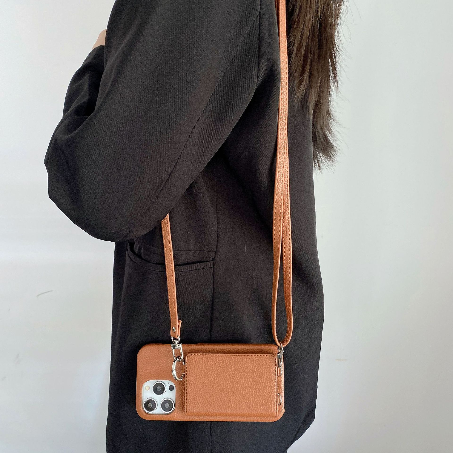 • Litchi 패턴 왼쪽과 오른쪽 오픈 뷰티 메이크업 거울 카드 가방 끈 다크 브라운