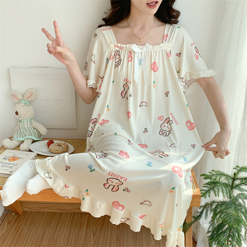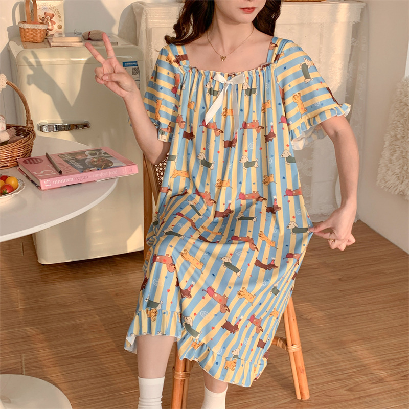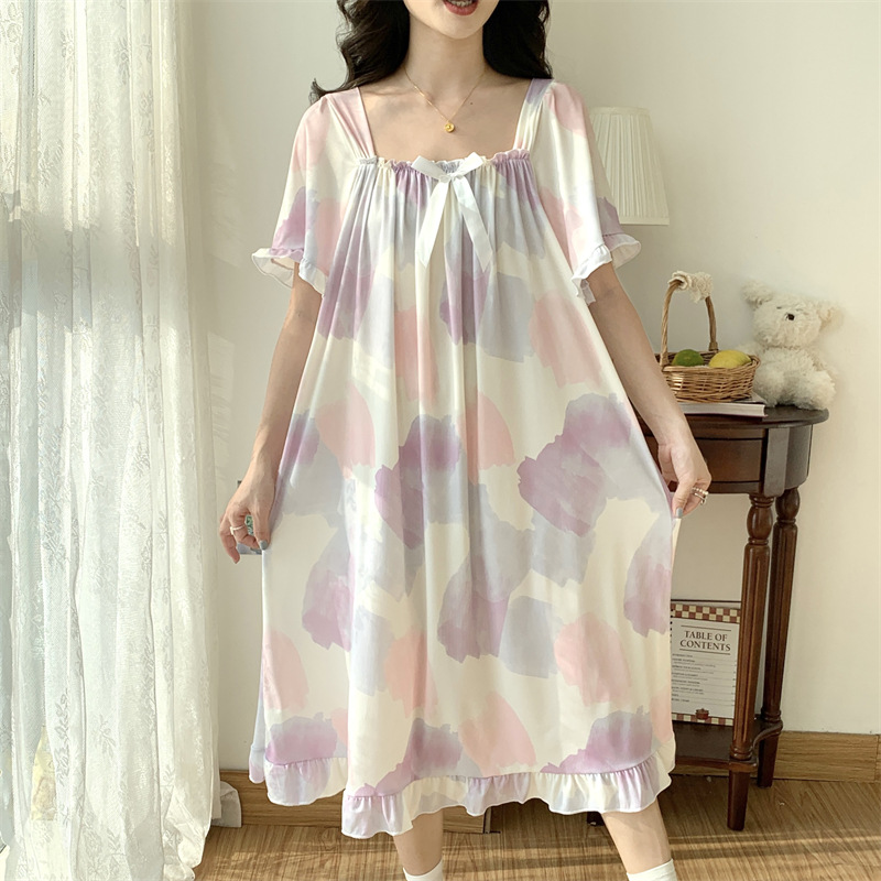 새로운 플러스 지방 플러스 사이즈 아이스 실크 잠옷 여성 여름 무릎 고급 잠옷 여성 얇은 느슨한 300kg 통통녀