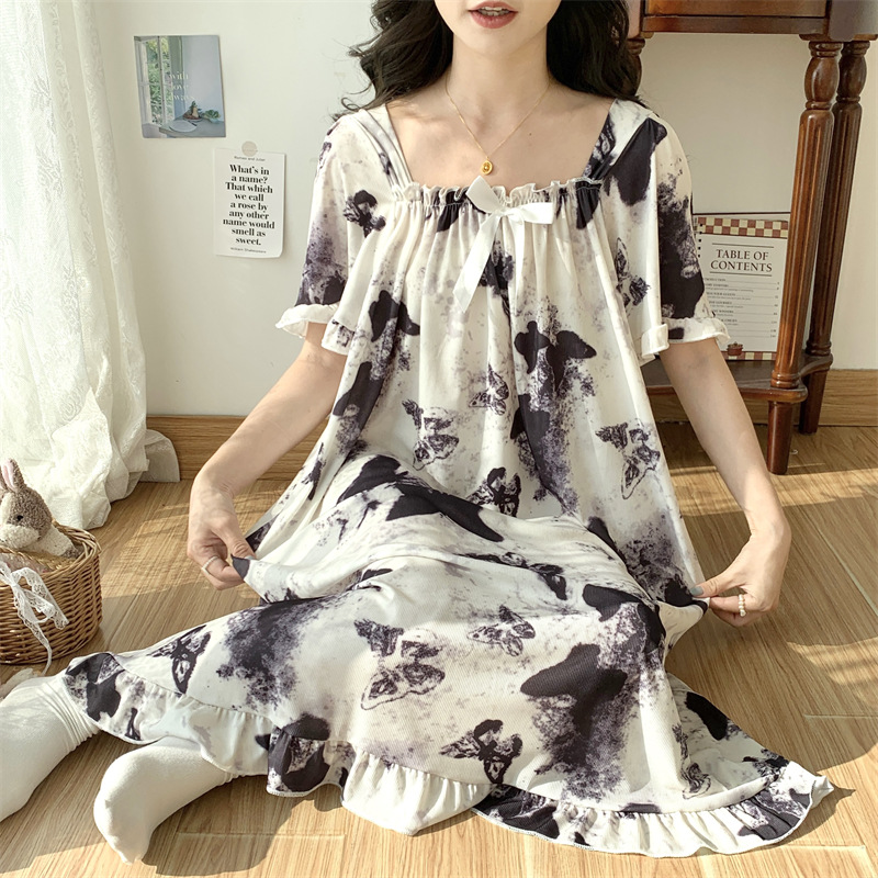 새로운 플러스 지방 플러스 사이즈 아이스 실크 잠옷 여성 여름 무릎 고급 잠옷 여성 얇은 느슨한 300kg 통통녀스토어 가기