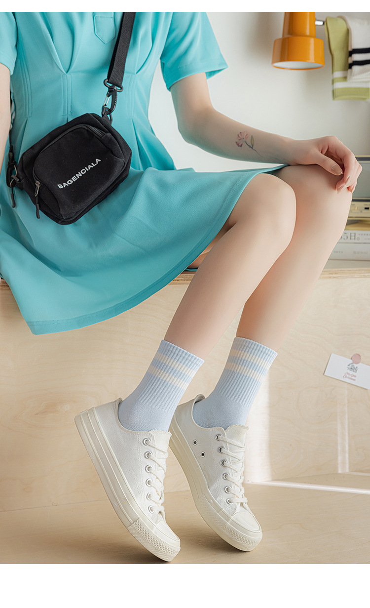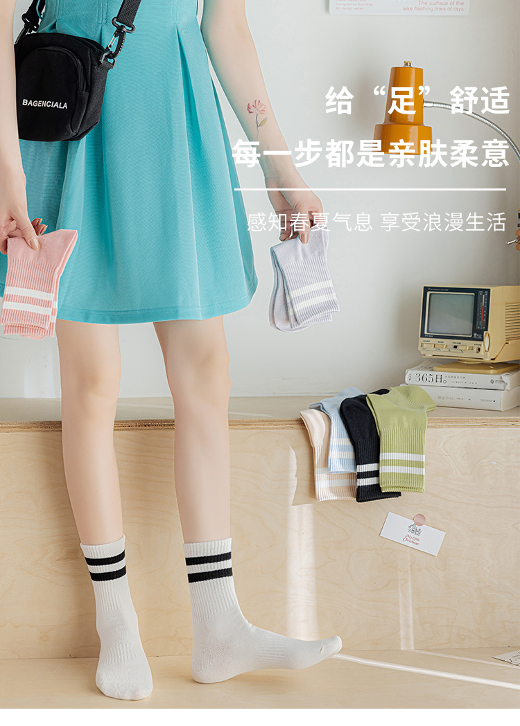 아동용 스타킹 봄과 가을 스트라이프 스포츠 양말 단색 모든 매치 트렌디 한 상어 바지 여름 흰색 통기성 일본식 중간 길이 스타킹스토어 가기