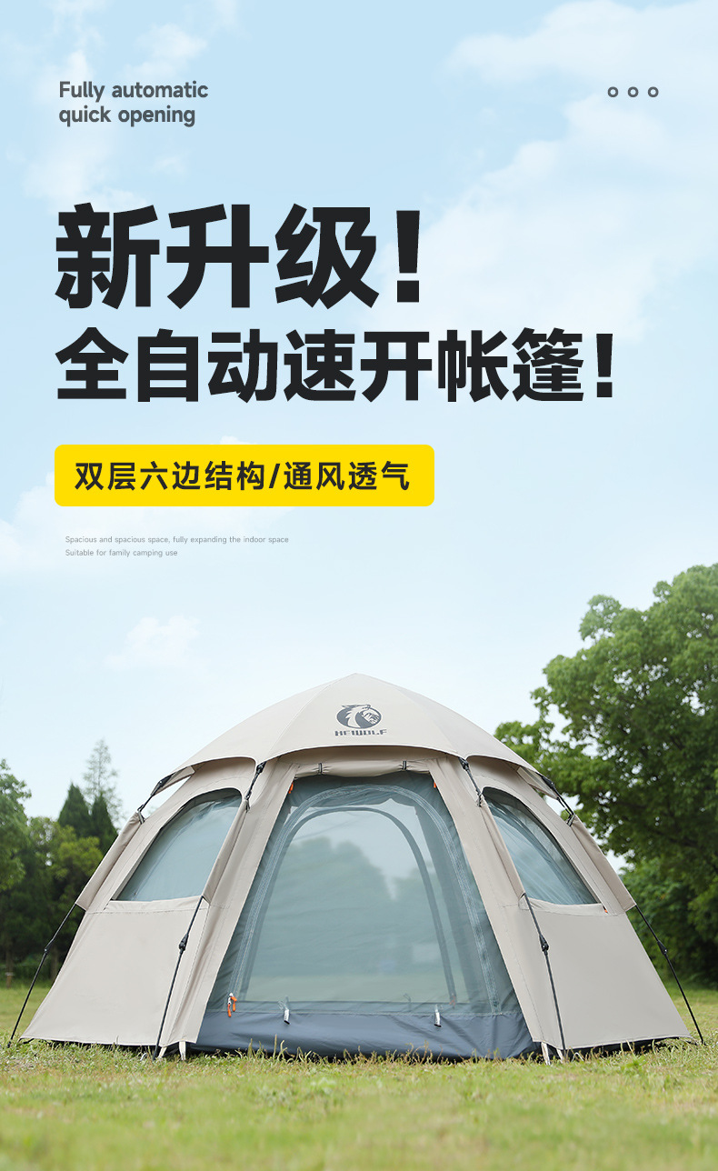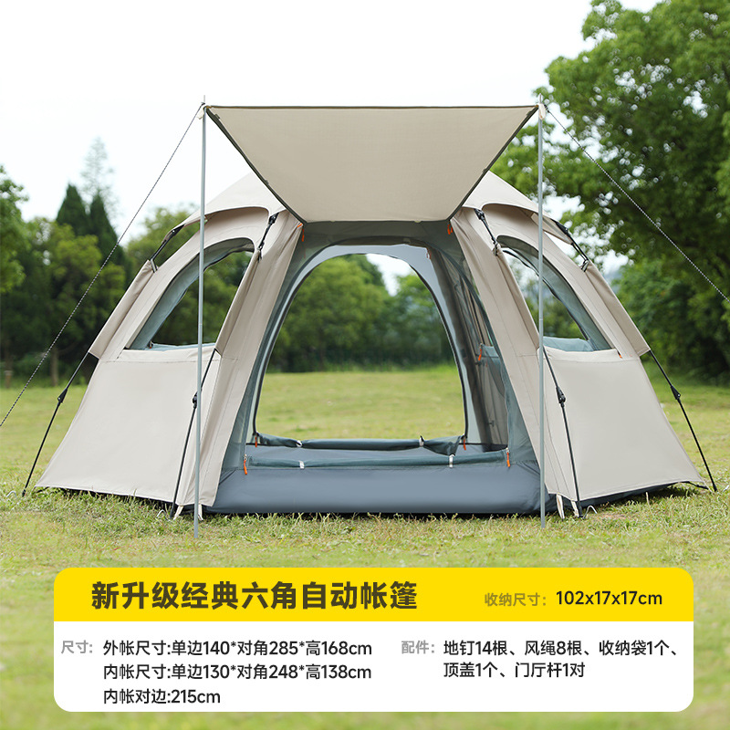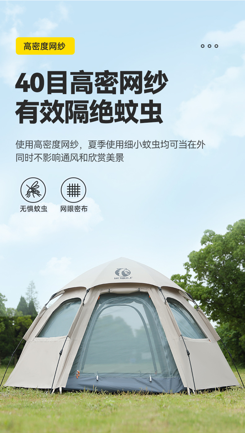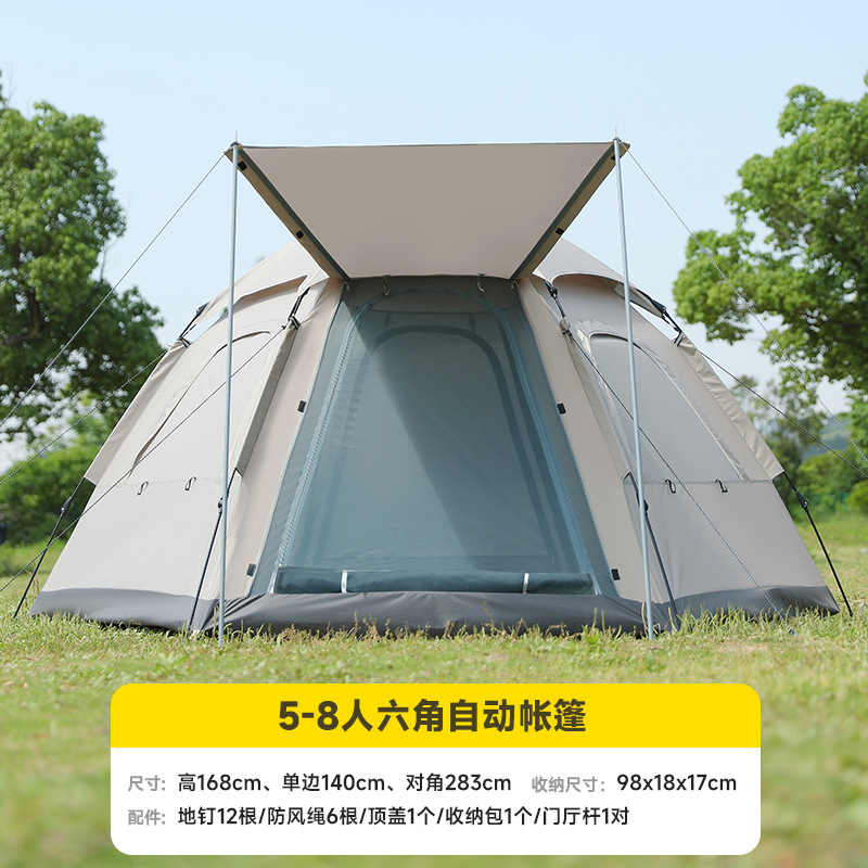 완전 자동 퀵 오픈 캠핑 텐트 빗폭풍 방지 모기 육각형 텐트 양면 윈도우 메쉬 야외 텐트 도매스토어 가기