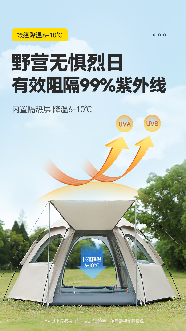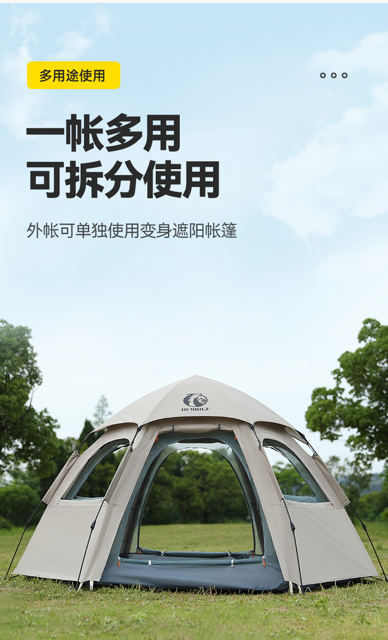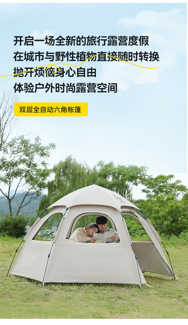 완전 자동 퀵 오픈 캠핑 텐트 빗폭풍 방지 모기 육각형 텐트 양면 윈도우 메쉬 야외 텐트 도매스토어 가기