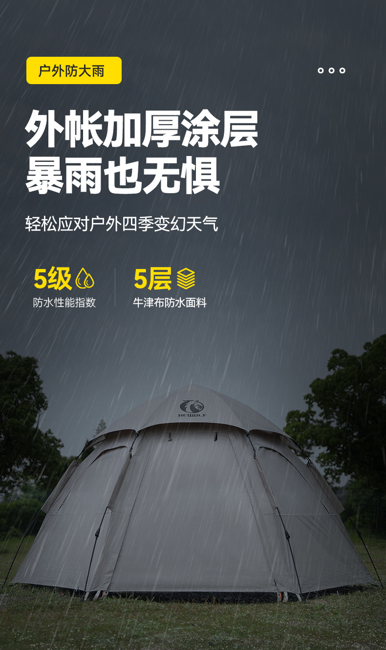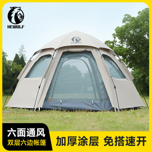 완전 자동 퀵 오픈 캠핑 텐트 빗폭풍 방지 모기 육각형 텐트 양면 윈도우 메쉬 야외 텐트 도매