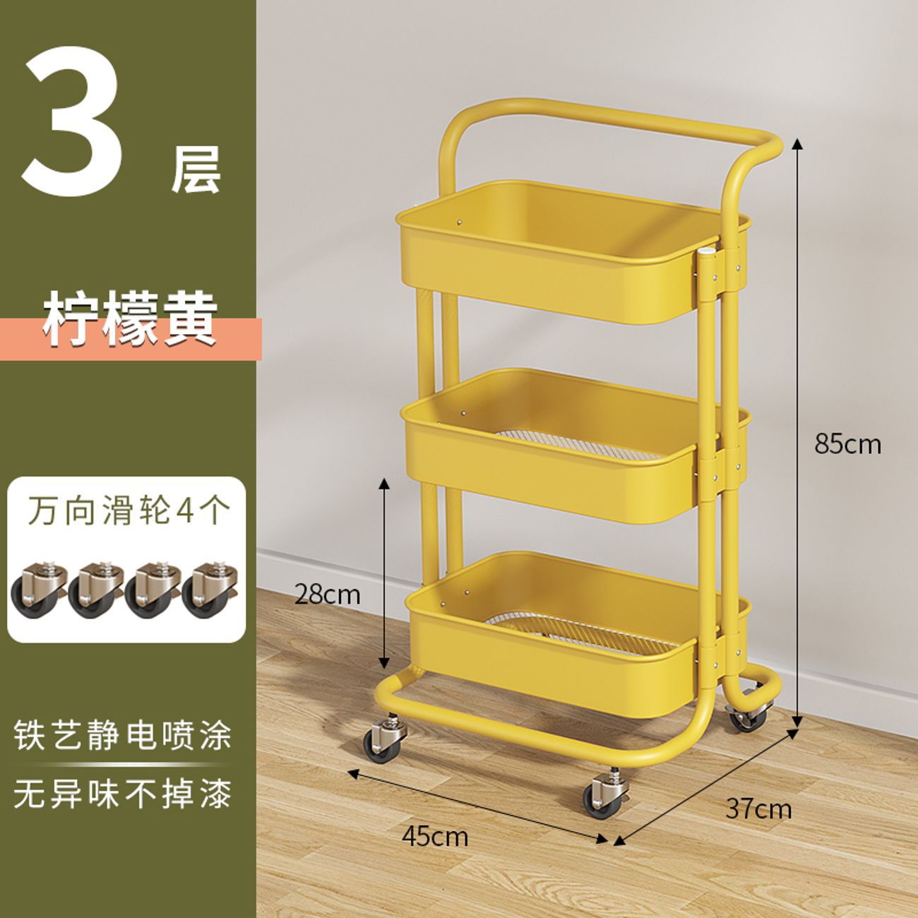 • 3 레이어 래커 밀크 옐로우 [탄소강 바구니 + 플라스틱 휠]