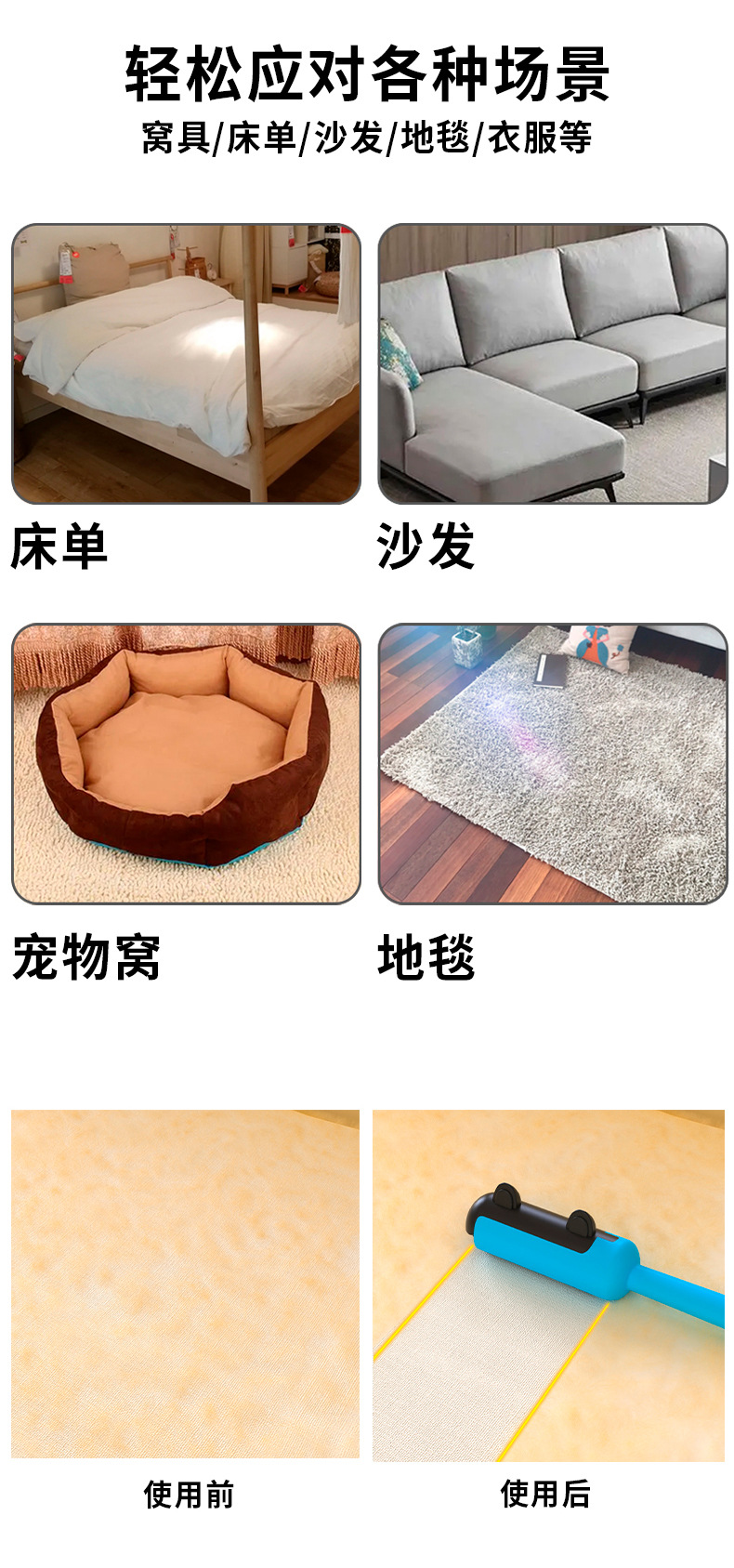 새로운 애완 동물 고양이 개 양방향 헤어 리무버 가정용 휴대용 롤러 플로팅 제모 침대 카펫 제모 브러시