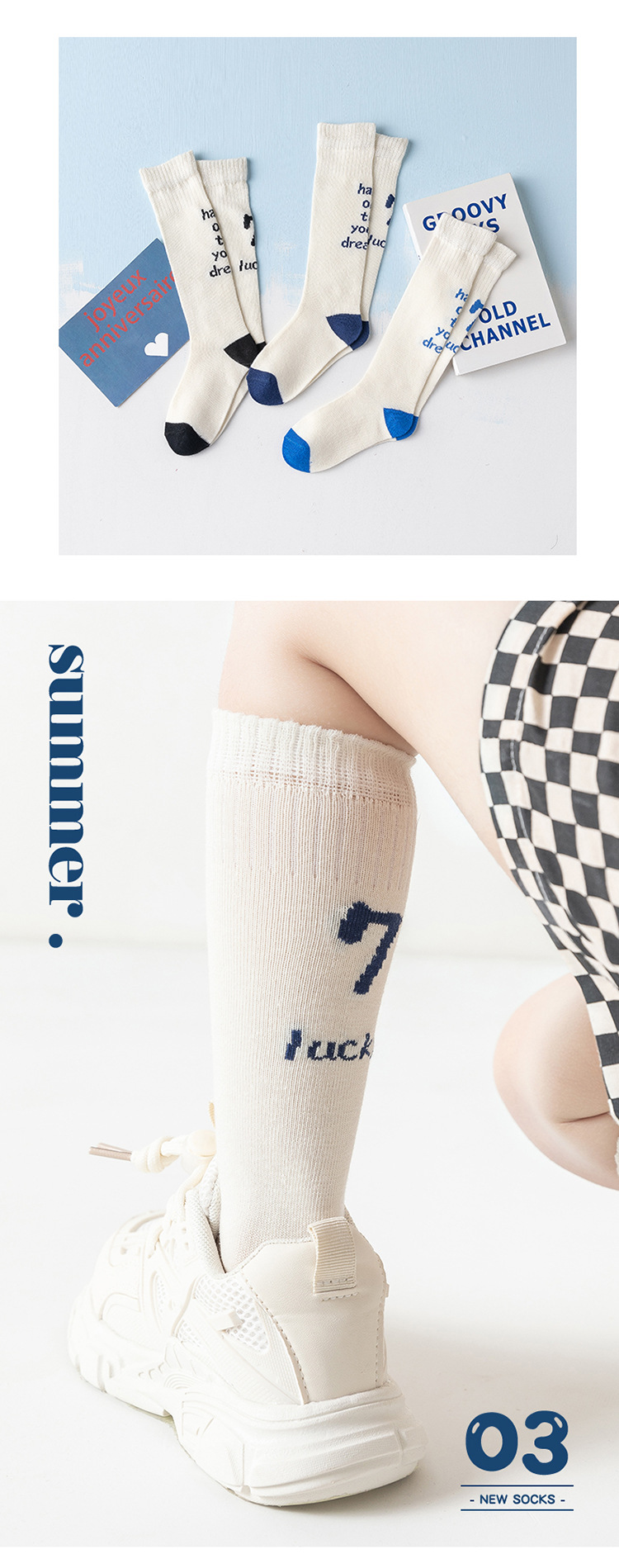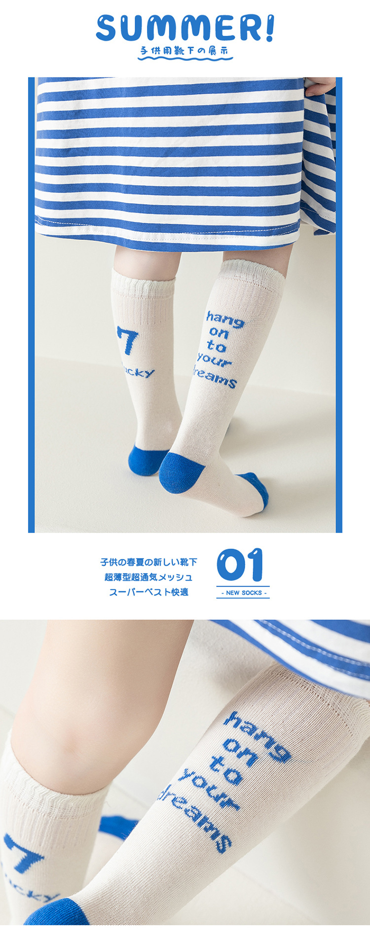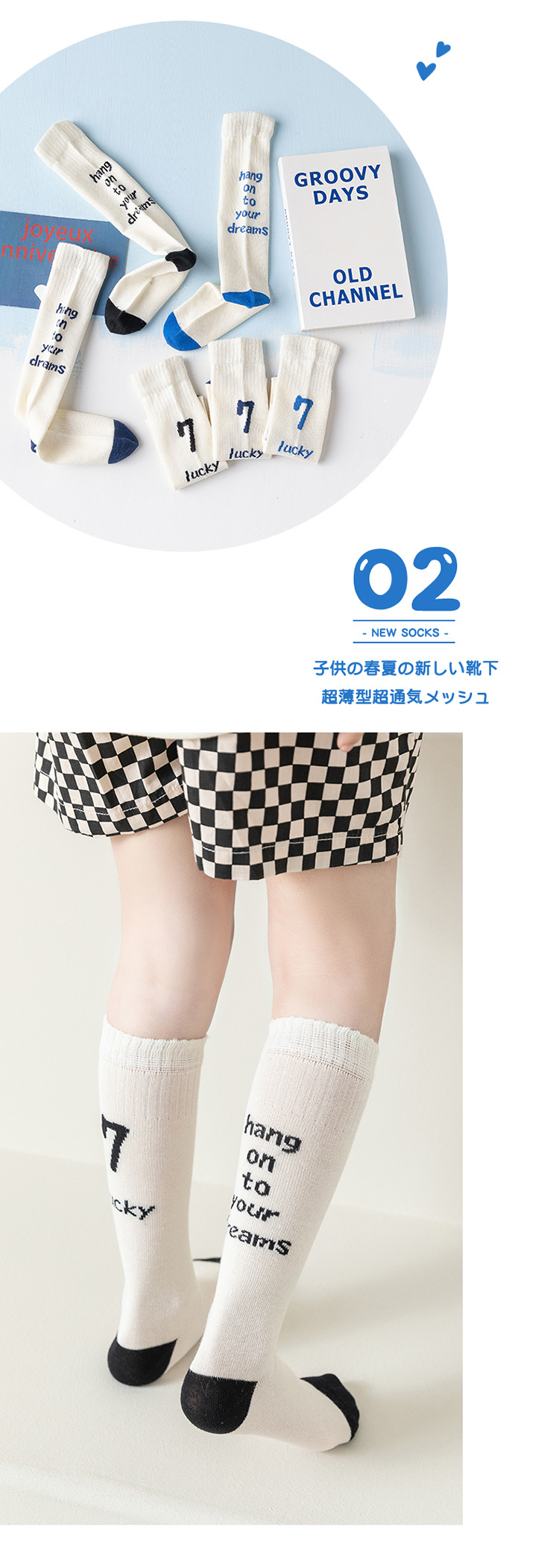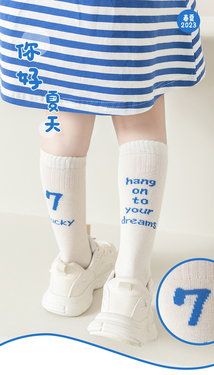 2023 봄과 여름 소년과 소녀를위한 새로운 유행 편지 양말 면 통기성 스포츠 어린이 스타킹