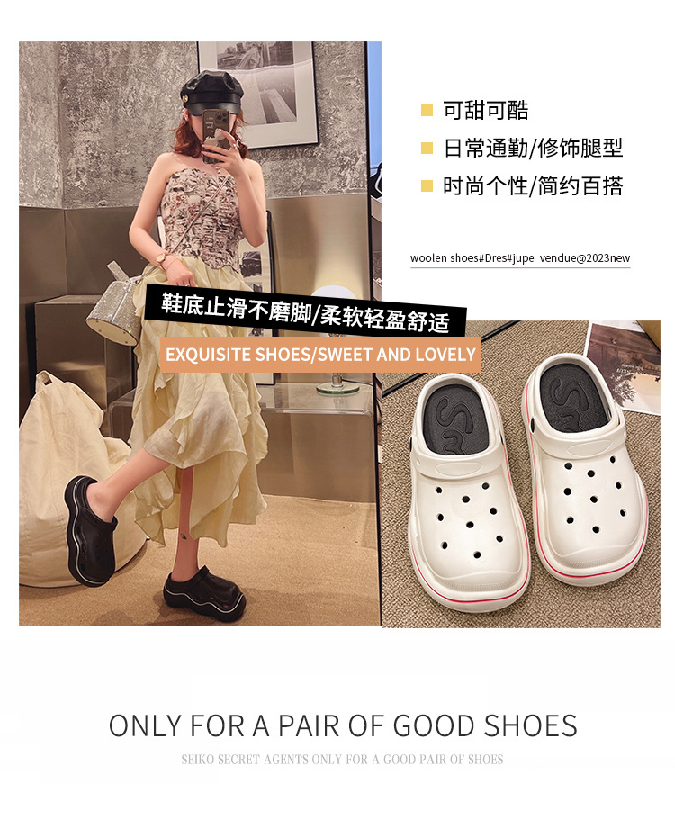 EVA 구멍 신발 여성 신발 스톰프 느낌 두꺼운 단독 학생 여성 샌들과 슬리퍼 만화 Baotou 귀여운 2023 새로운 여름