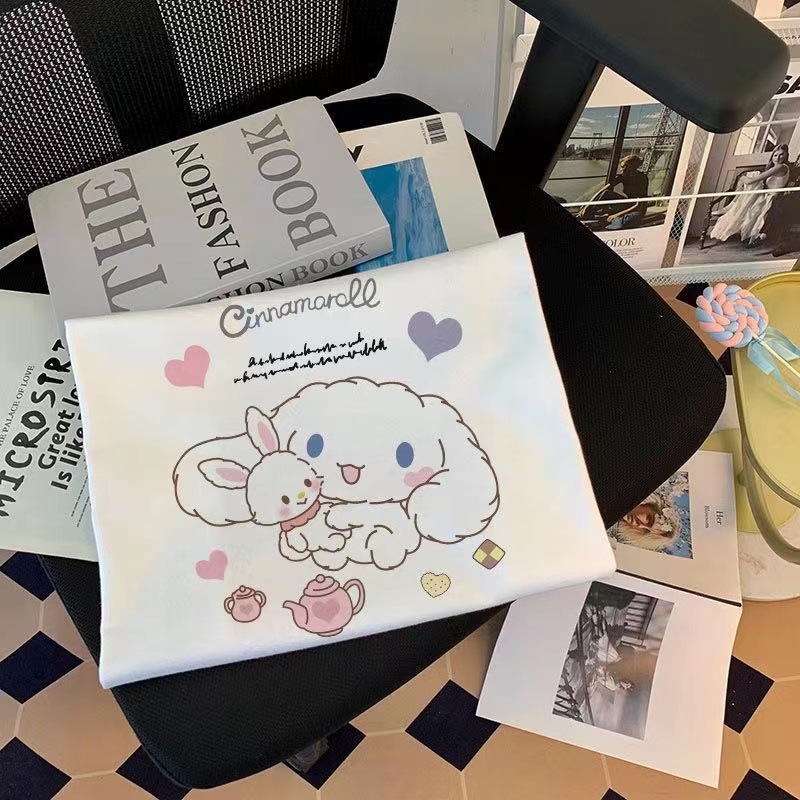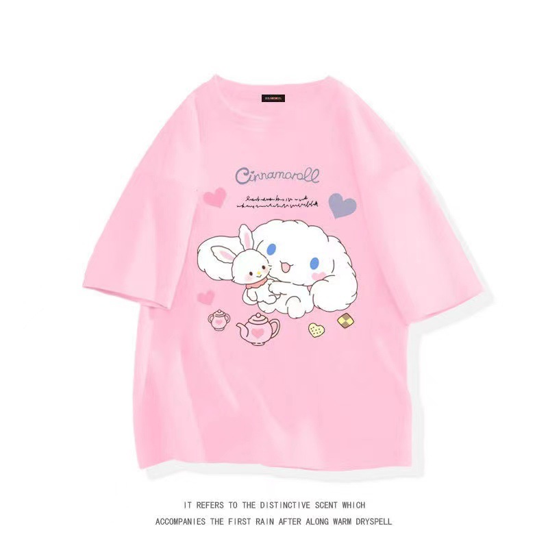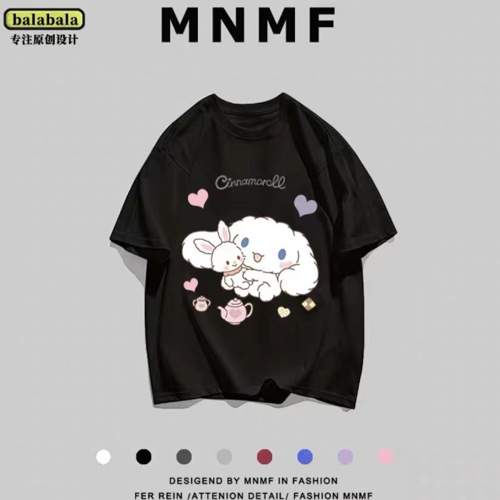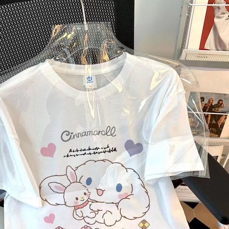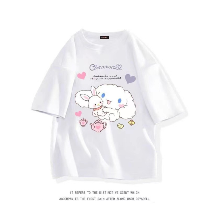 중대형 어린이를 위한 순면 여아 여름 반팔 티셔츠 일본식 계피 개 상의 아동용 패셔너블 루즈 코튼 반팔스토어 가기