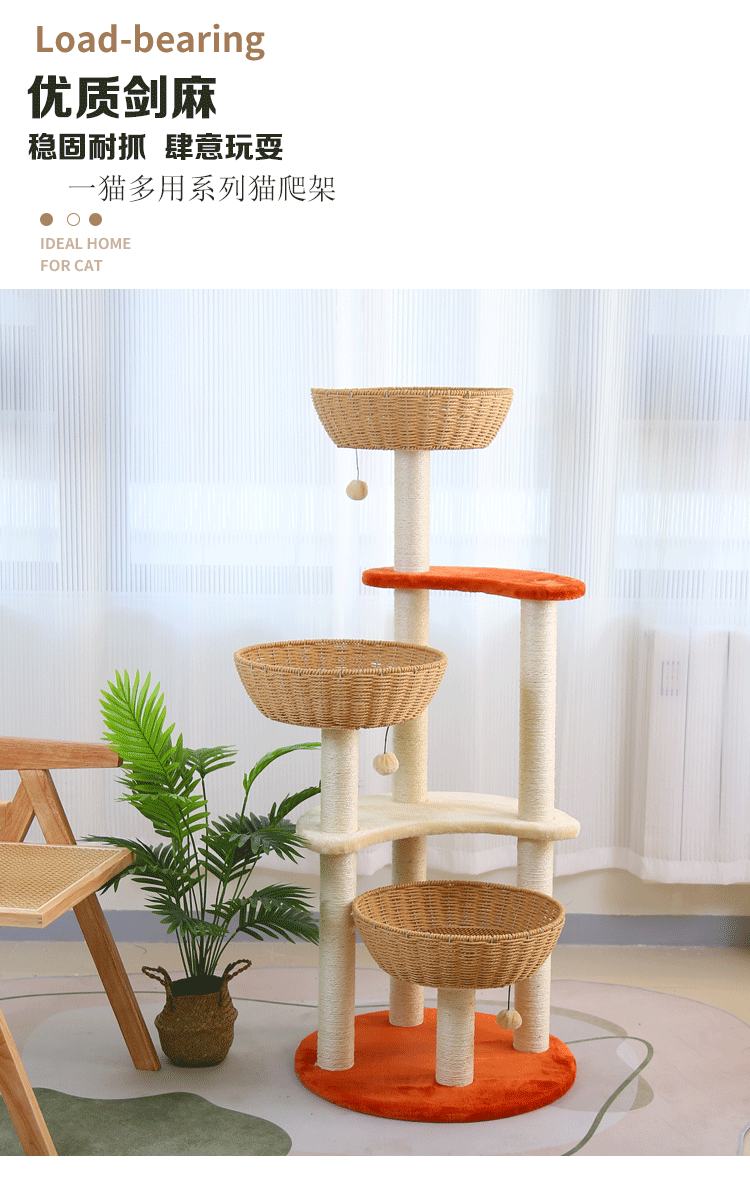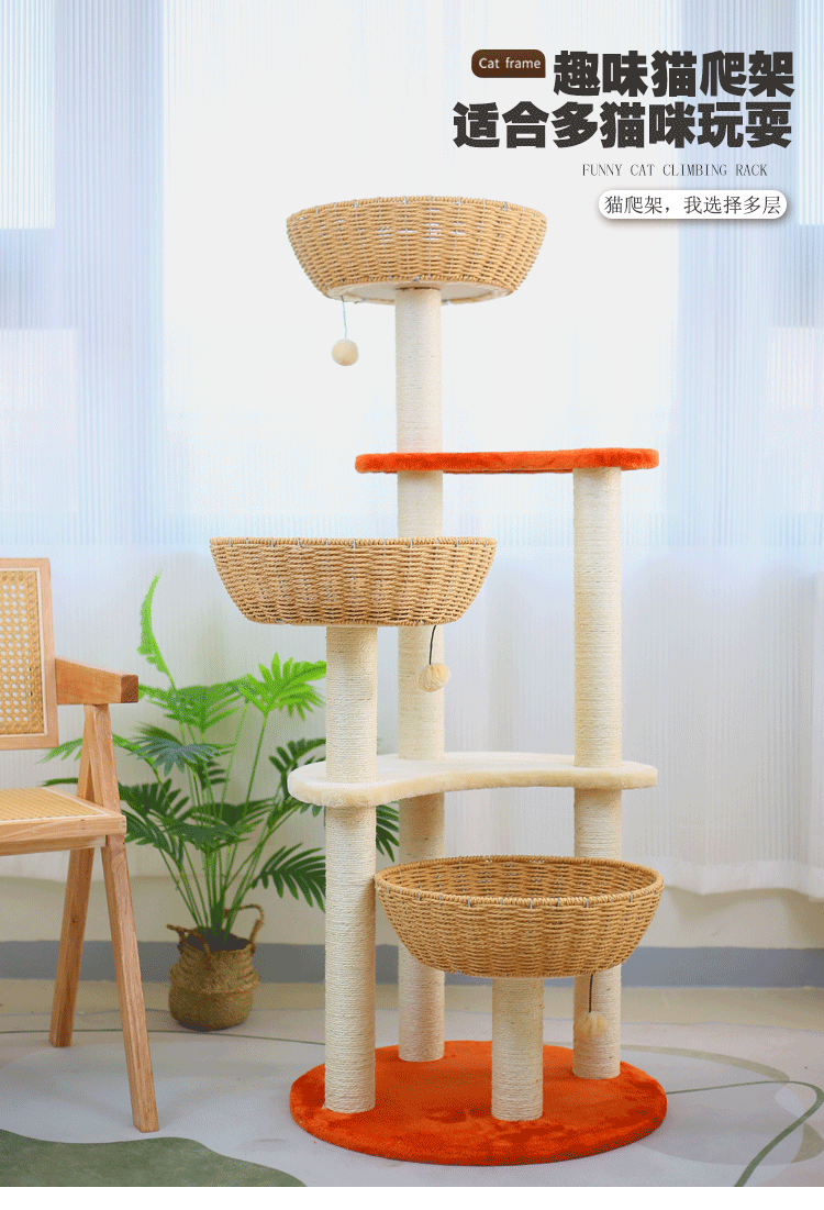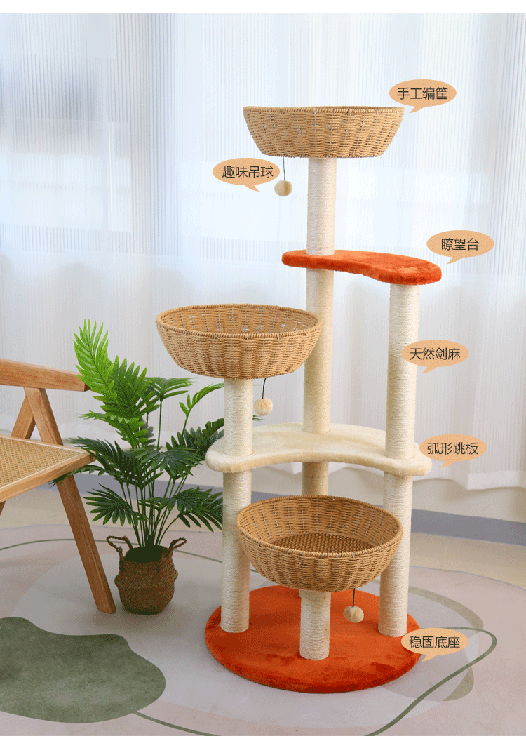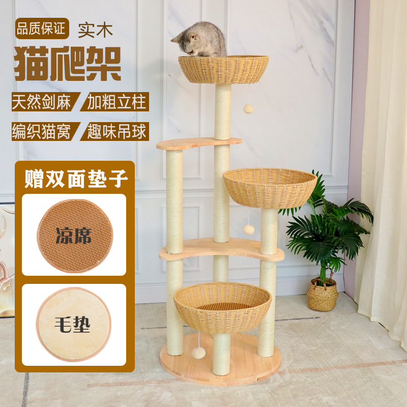 단단한 나무 짠 고양이 등산 랙 고양이 둥지 고양이 나무 통합 수직 고양이 선반 공간 캡슐 사이잘삼 고양이 긁는 판 고양이 용품