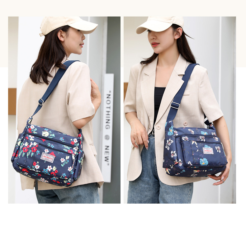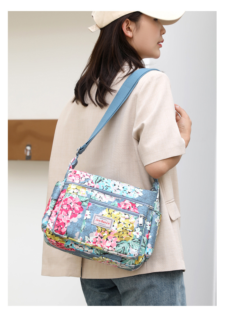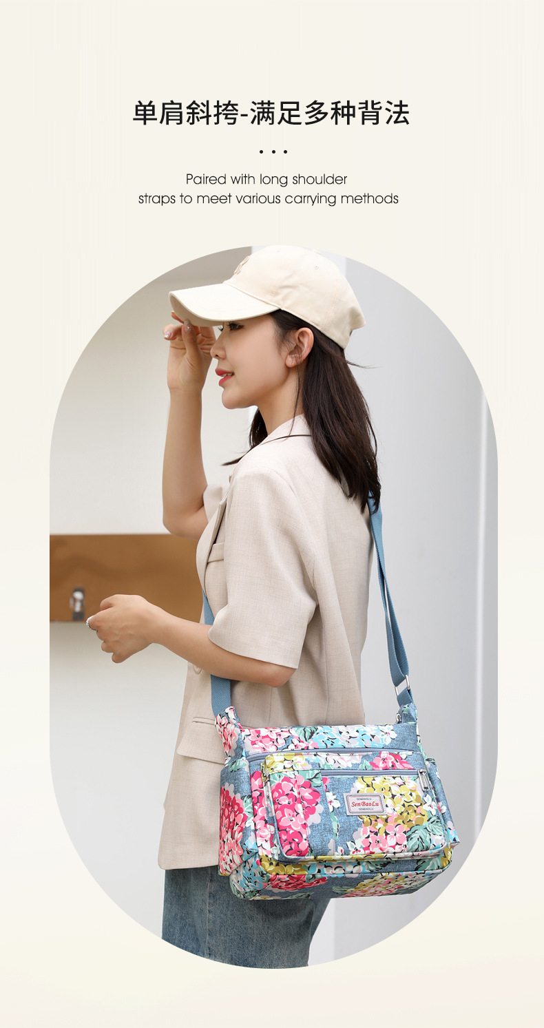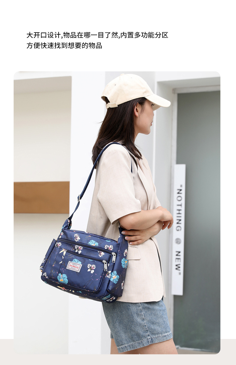 유행 인쇄 숄더백 경량 야외 간단한 여행 중년 어머니 가방 대용량 멀티 컴 파트먼트 크로스바디 백스토어 가기