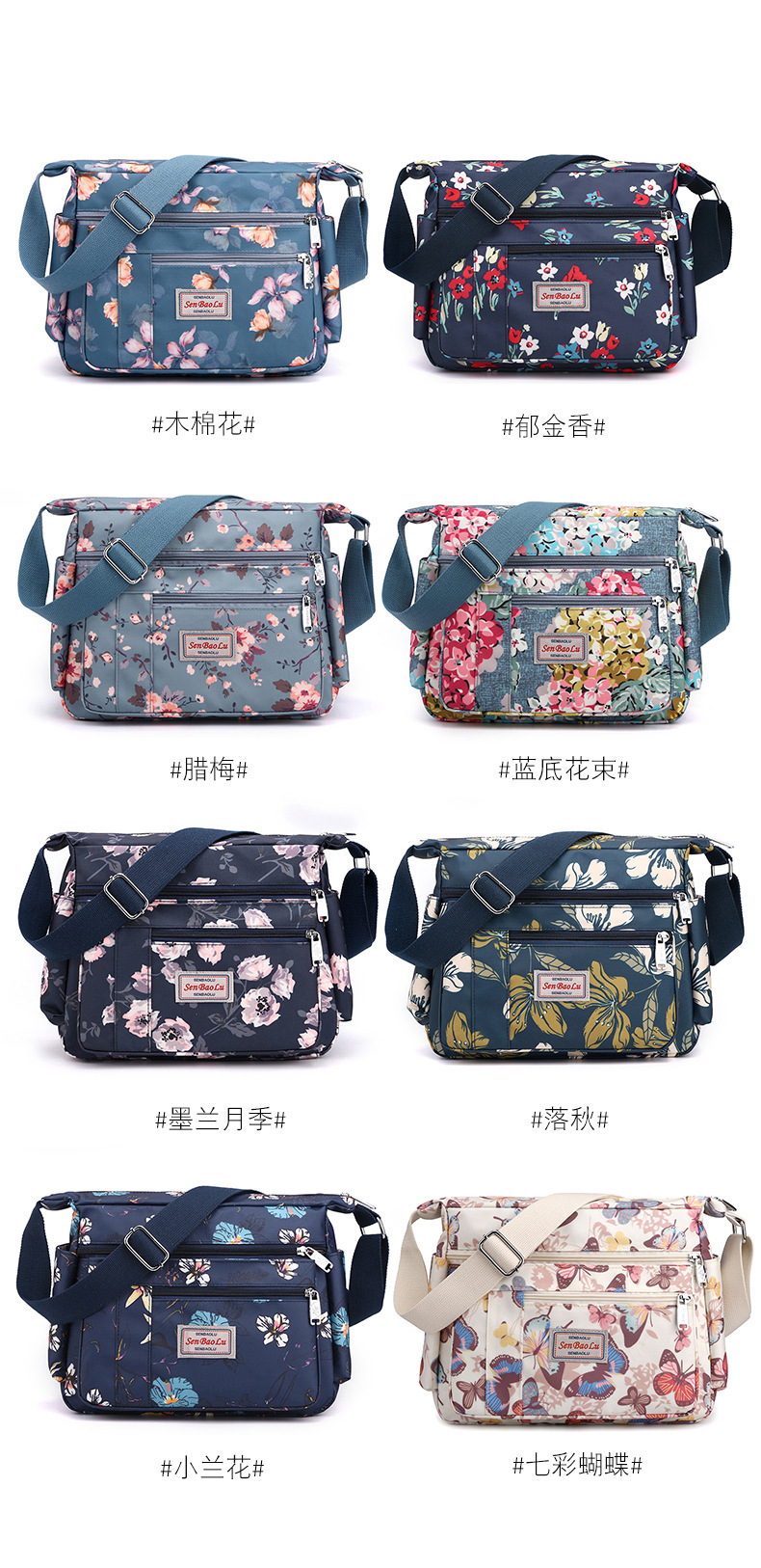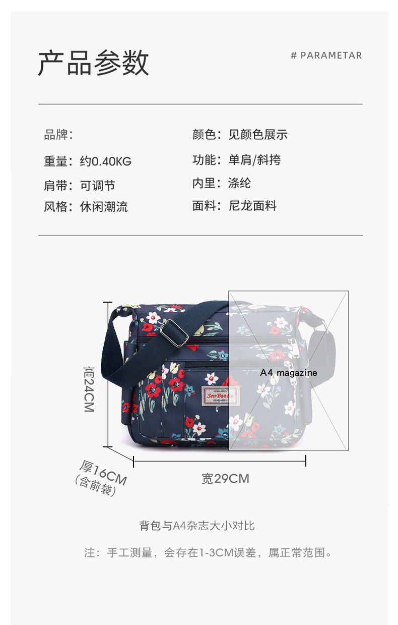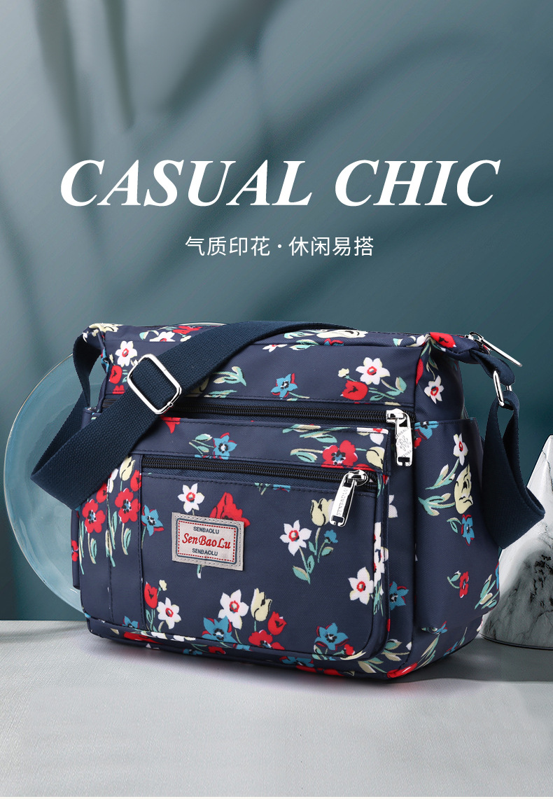 유행 인쇄 숄더백 경량 야외 간단한 여행 중년 어머니 가방 대용량 멀티 컴 파트먼트 크로스바디 백스토어 가기
