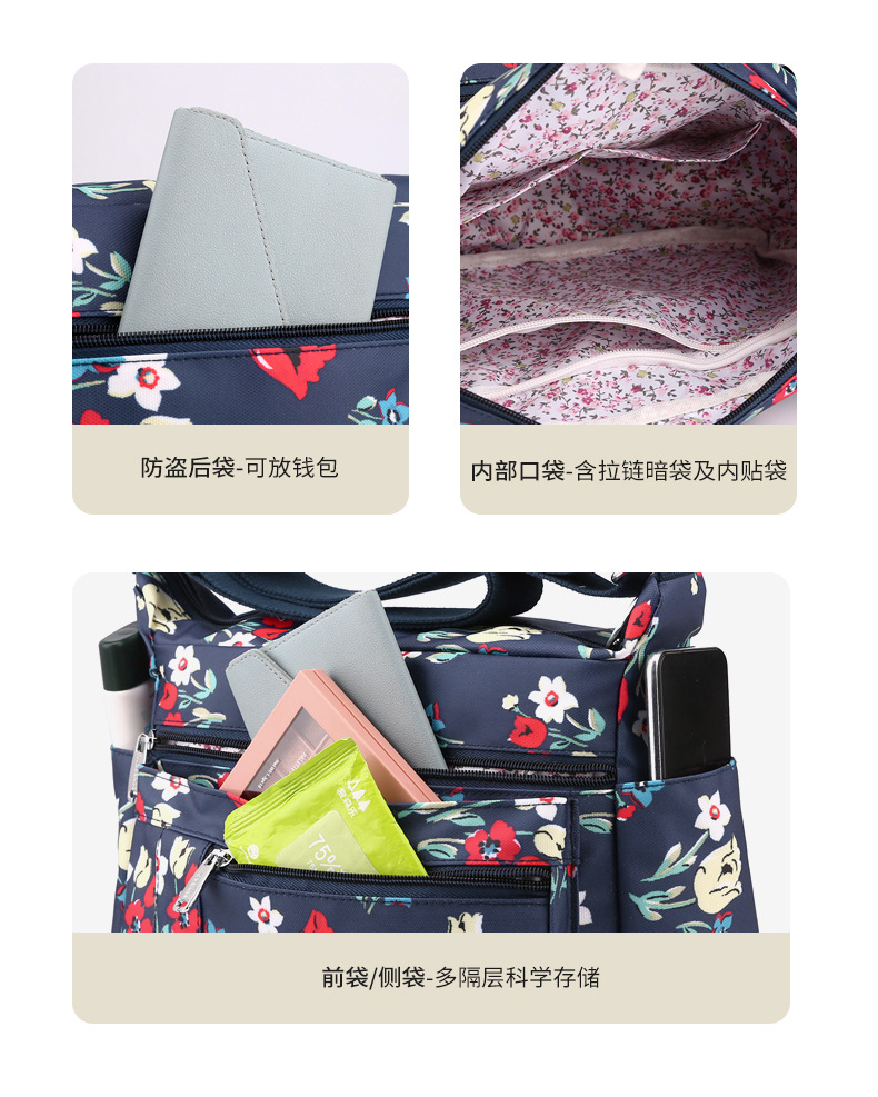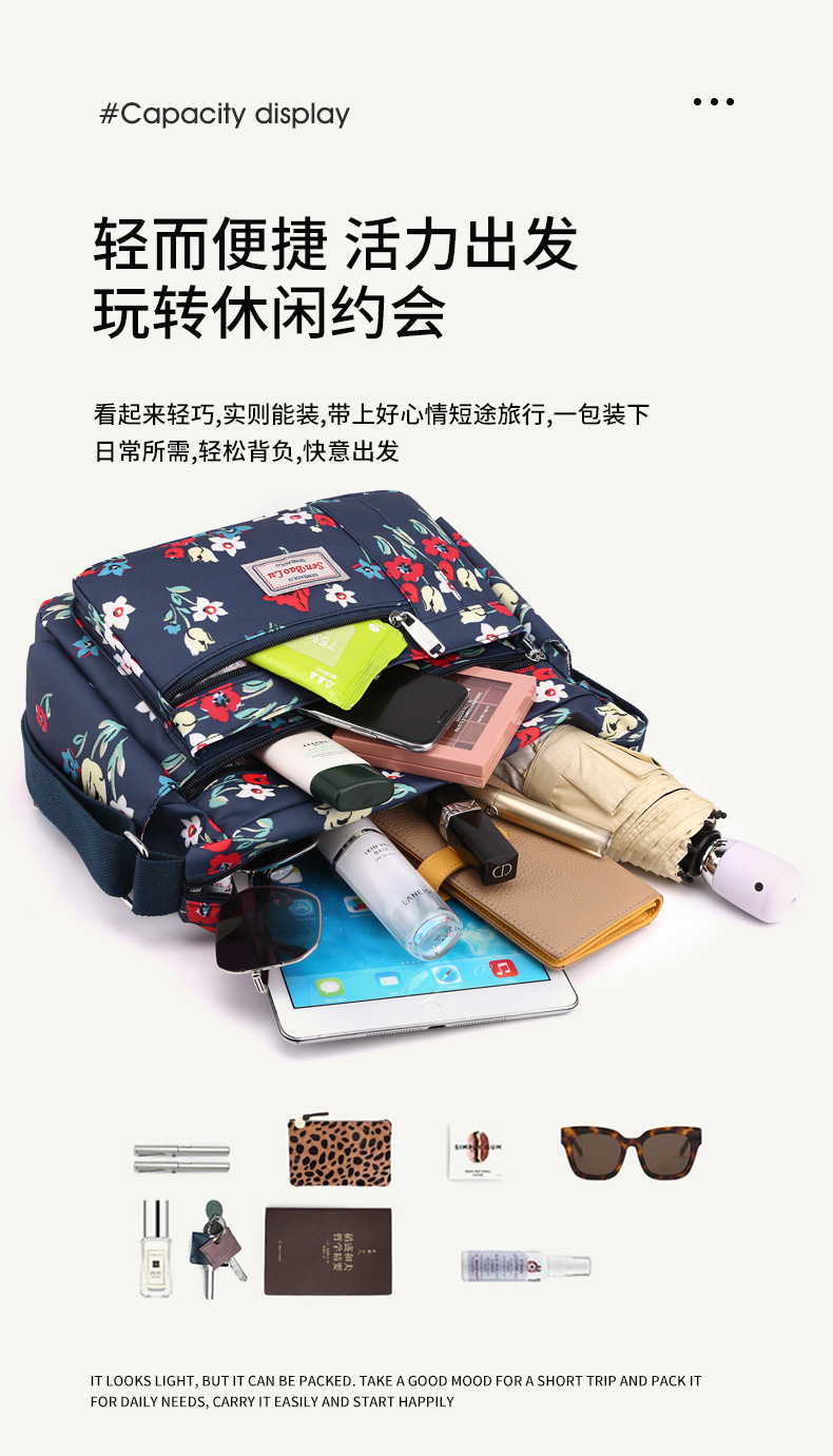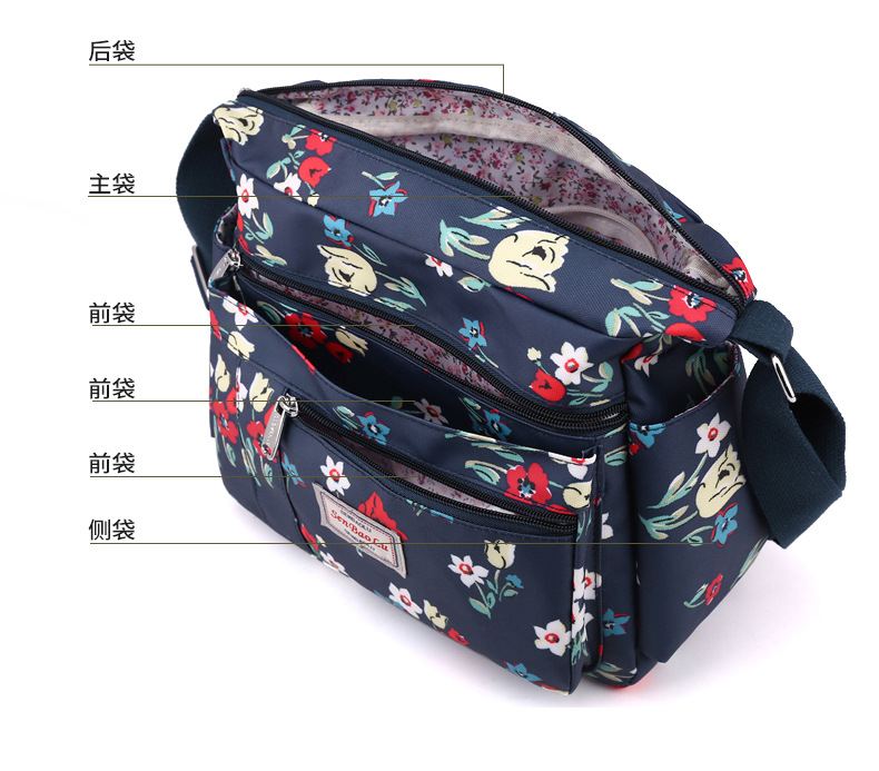 유행 인쇄 숄더백 경량 야외 간단한 여행 중년 어머니 가방 대용량 멀티 컴 파트먼트 크로스바디 백