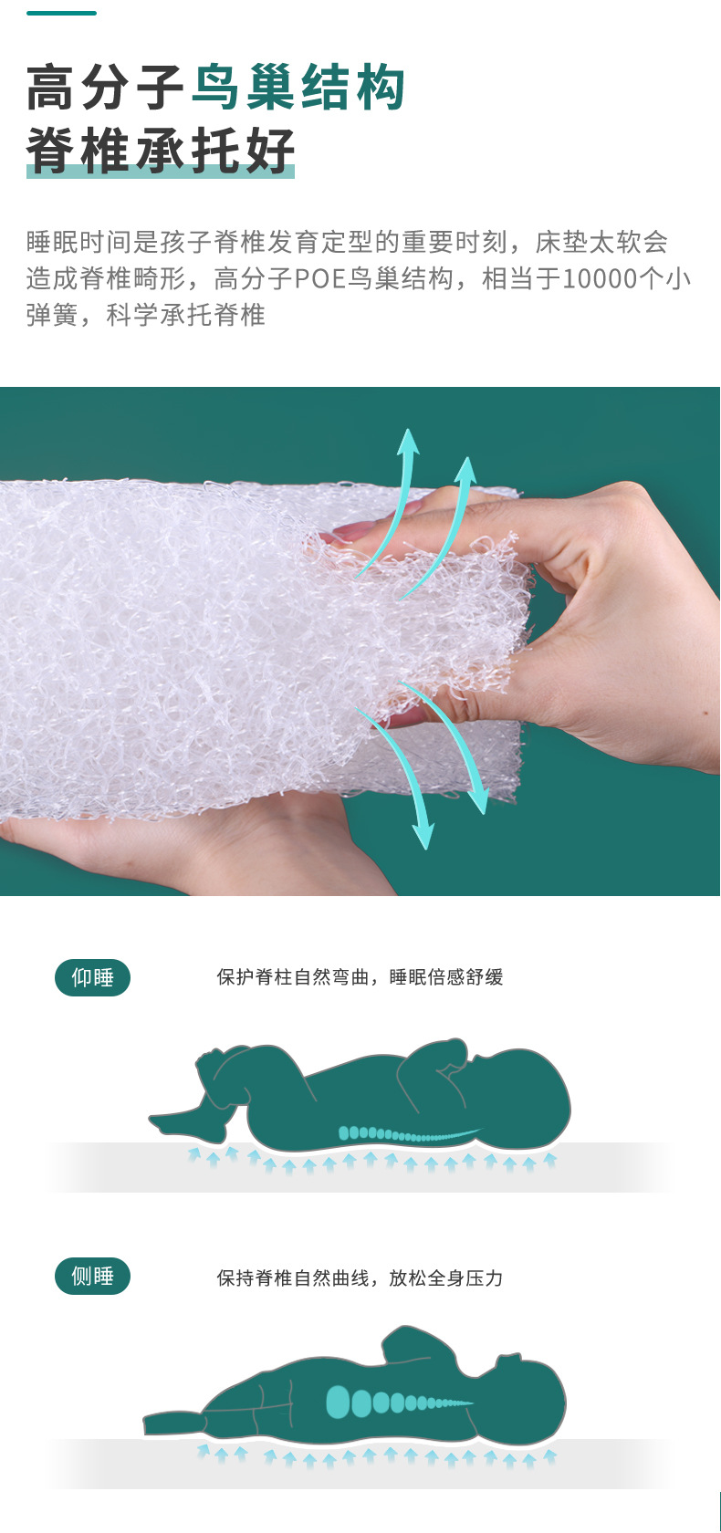 4D 에어 파이버 신생아용 매트리스 페포 통기성 좋고 세탁 가능 무진드기 무포름알데히드 학생용 싱글