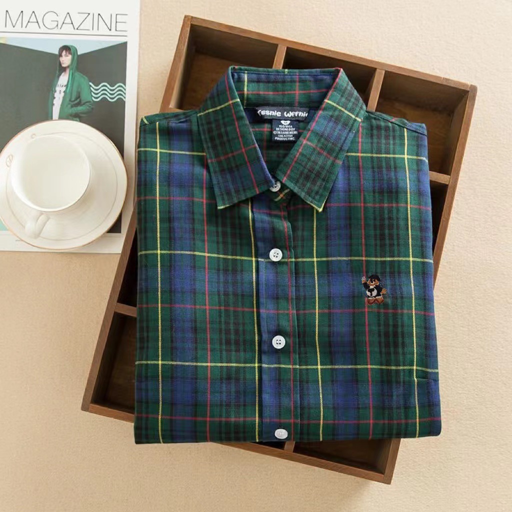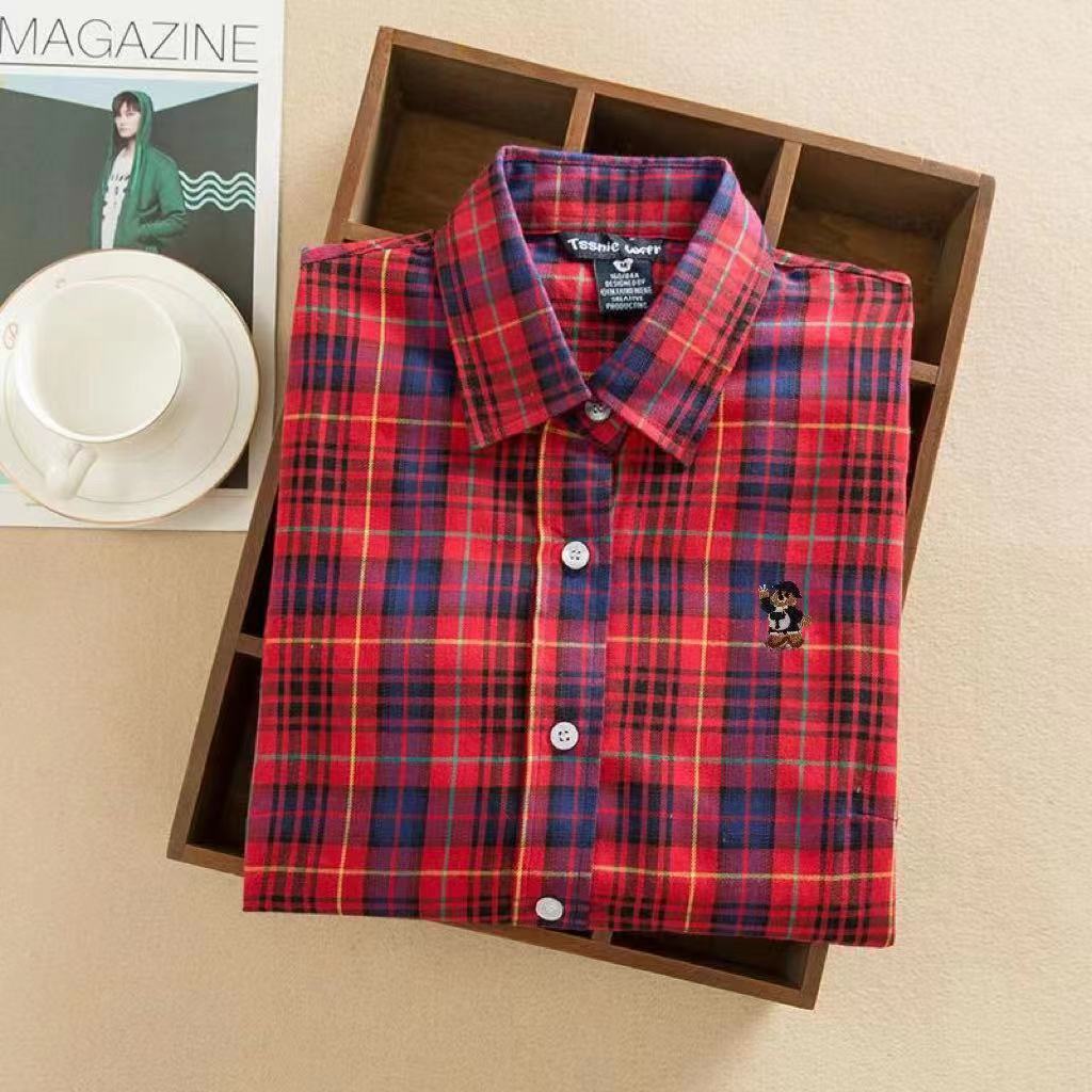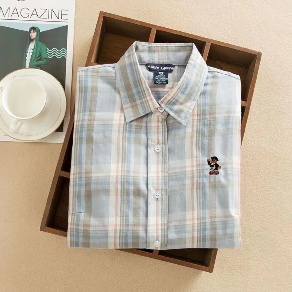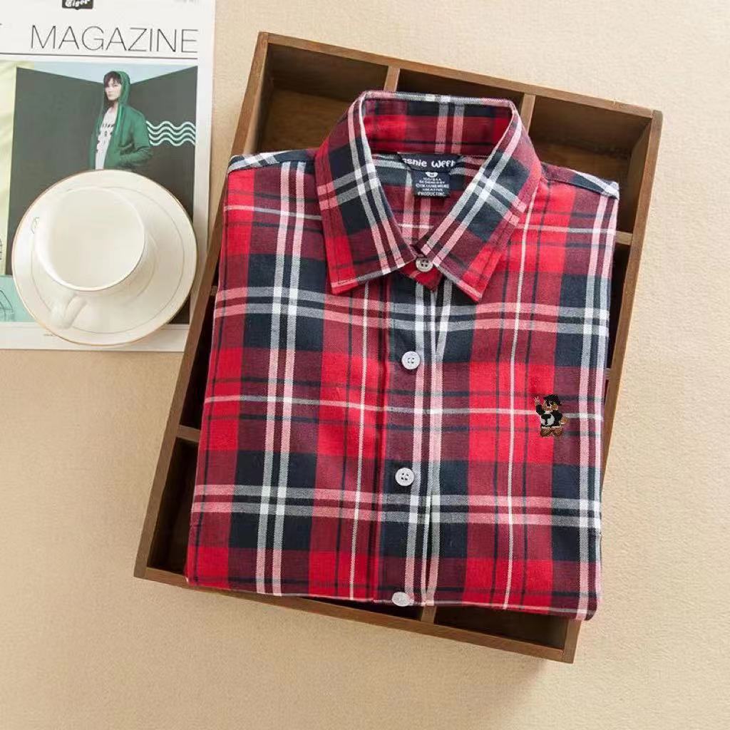 도매 2026 봄 가을 체크무늬 셔츠 여성용 긴팔 심플 순면 얇은 캐주얼 체크무늬 베이스 셔츠스토어 가기