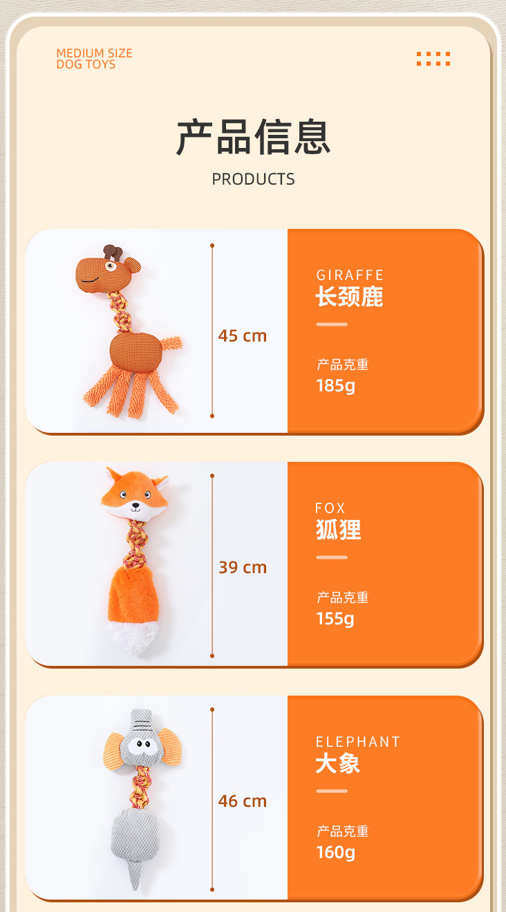 Tianyuan 애완 동물 개 장난감 동물 모델링 대형 개 장난감 물기 방지 사운드 장난감 봉제 로프 어금니 장난감스토어 가기