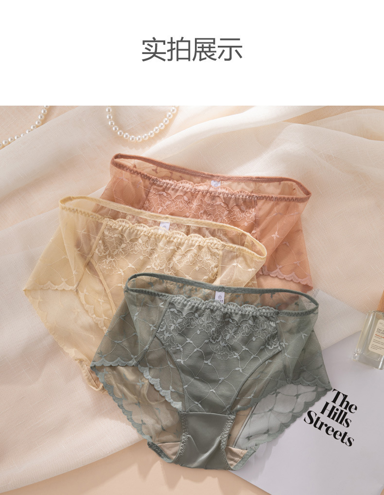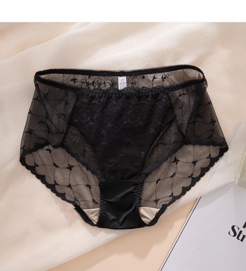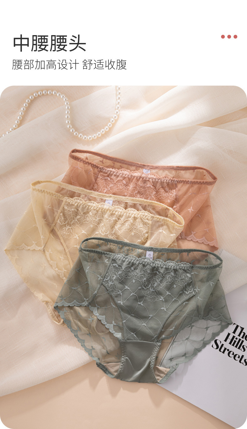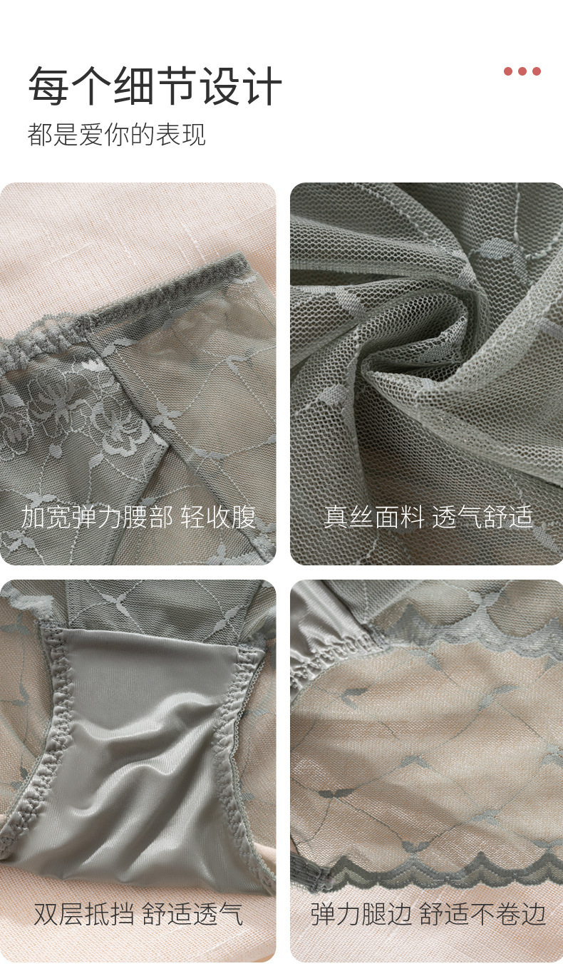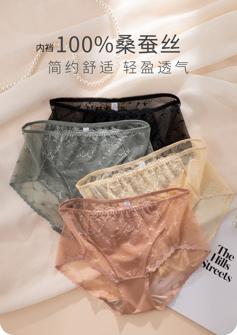 레이스 속옷 여성용 플라워 미드 웨이스트 더블 레이어 가랑이 100 뽕나무 실크 팬티 얇은 통기성 바지