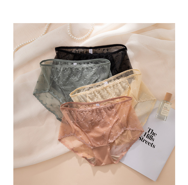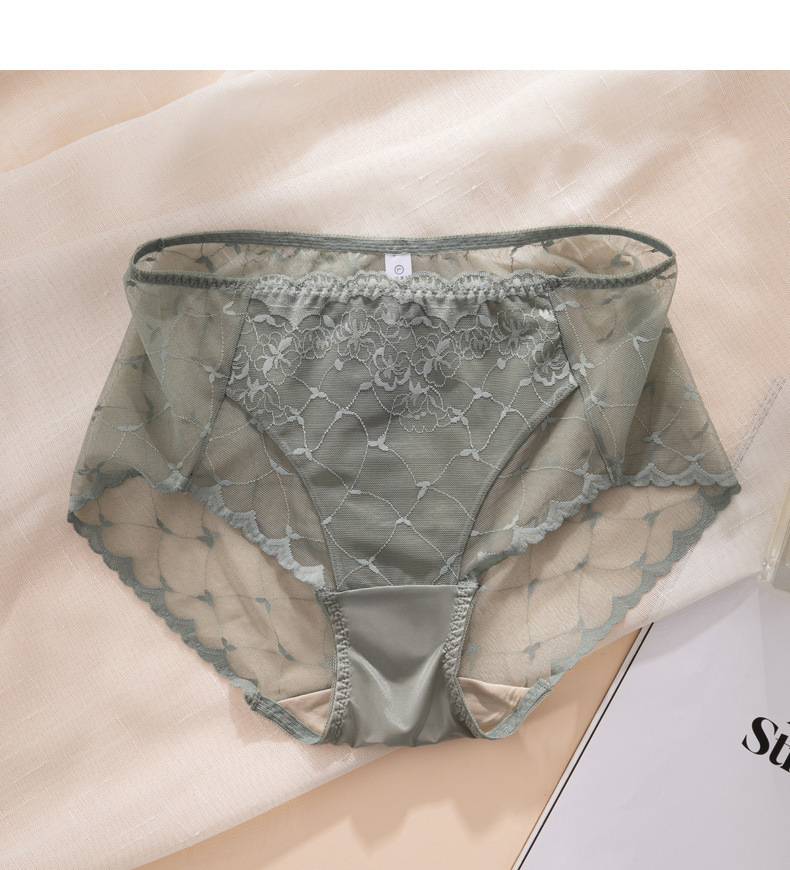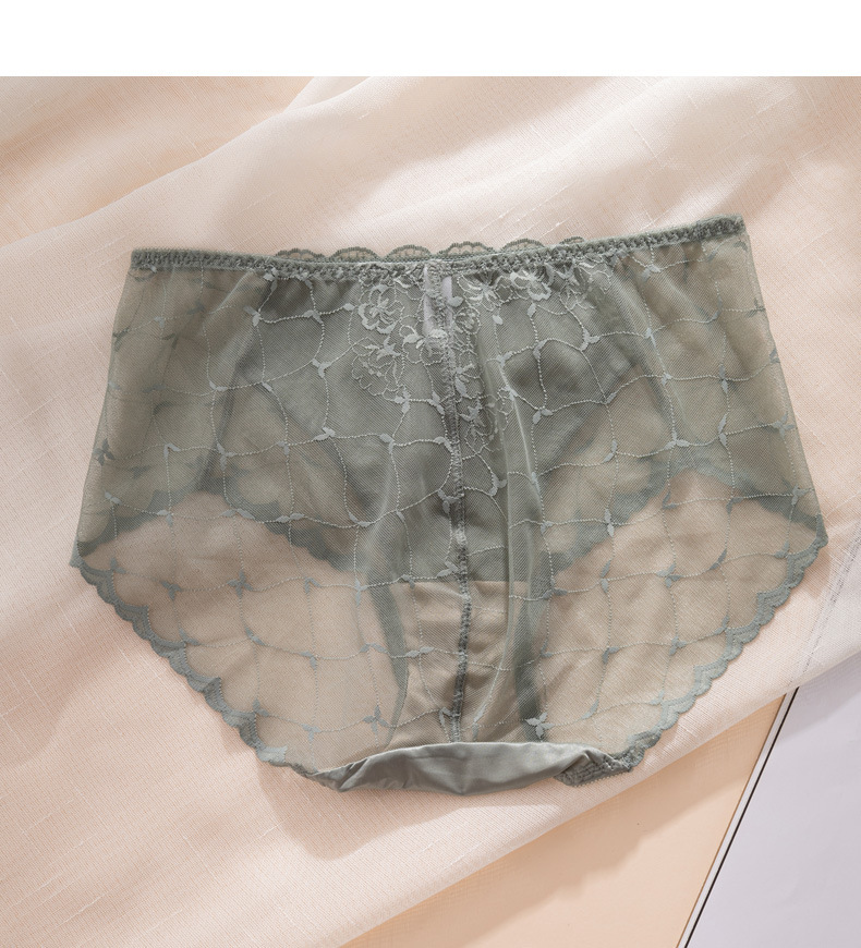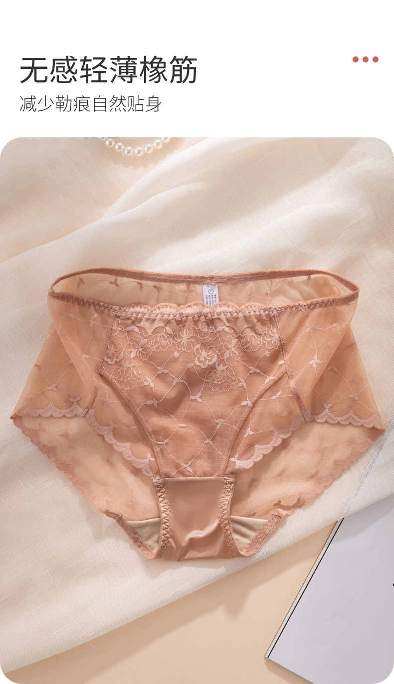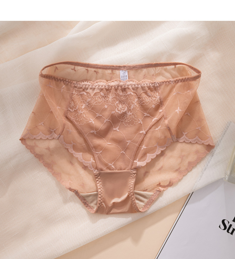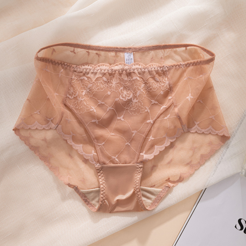 레이스 속옷 여성용 플라워 미드 웨이스트 더블 레이어 가랑이 100 뽕나무 실크 팬티 얇은 통기성 바지