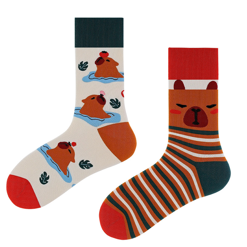 크로스 보더 뉴 인 애니멀 펀 자카드 남성과 여성을위한 유행 양말 AB 만다린 오리 양말 커플 중간 길이 양말 스트리트 면 양말스토어 가기