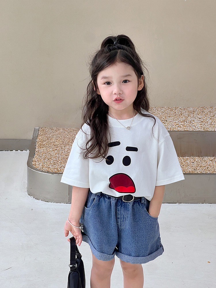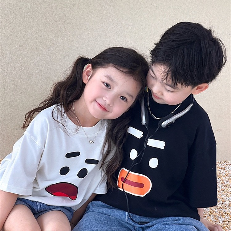 형제 자매 어린이 반팔 티셔츠 귀여운 표현 가방 인쇄 여름 어린이 소년 소녀 아기 한국 패션스토어 가기