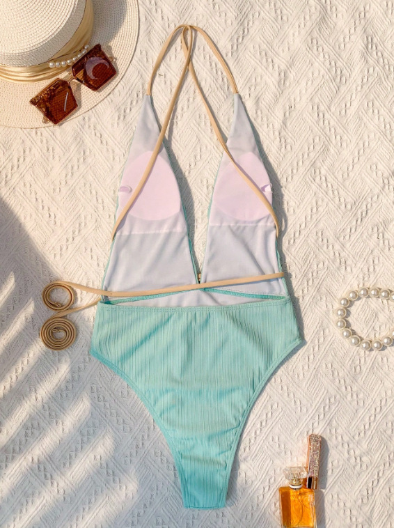 비치 수영복 뉴 브이넥 유럽과 미국 크로스 보더 패션 섹시 원피스 수영복 도매