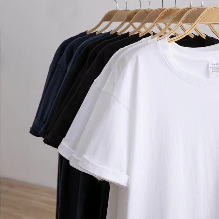 여름 남성용 면 라운드 넥 루즈한 베이스 셔츠 남성 및 여성 커플 흑백 탑 티셔츠 통기성 하프 슬리브 스포츠웨어스토어 가기