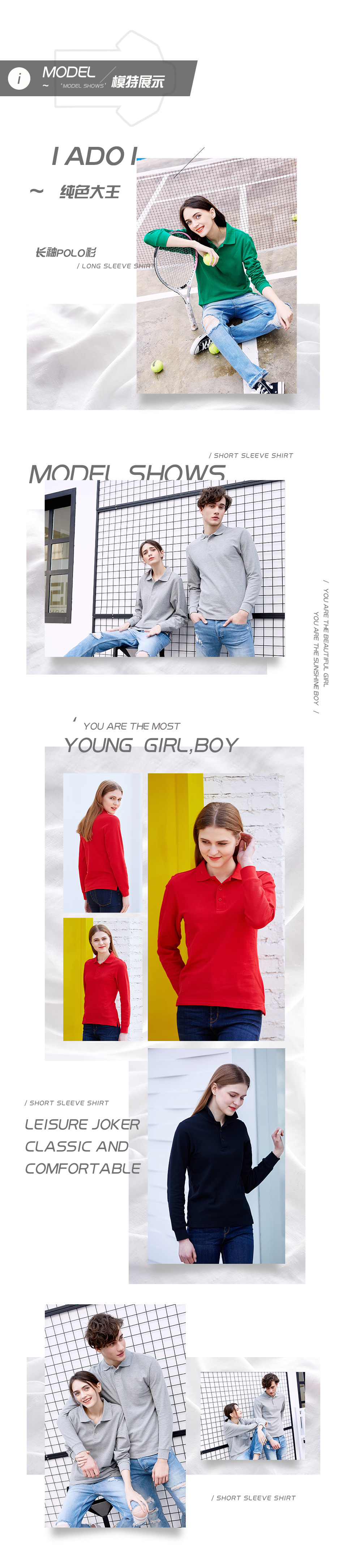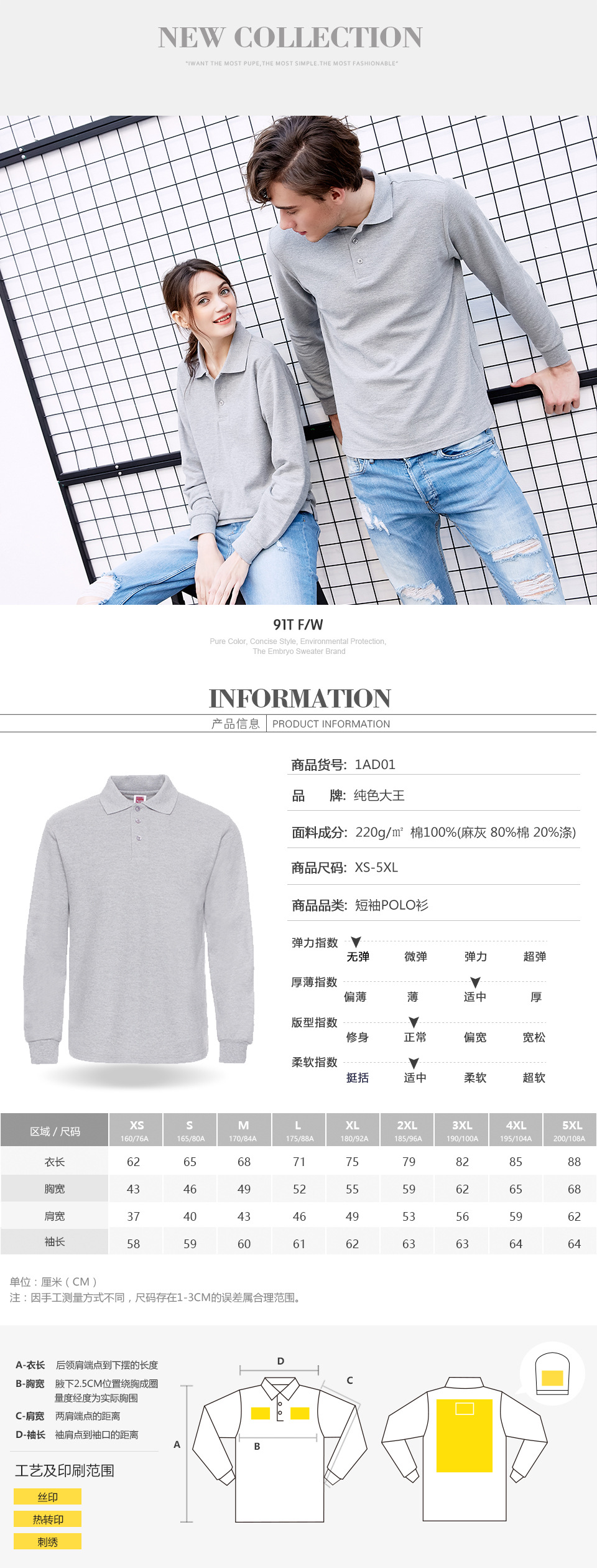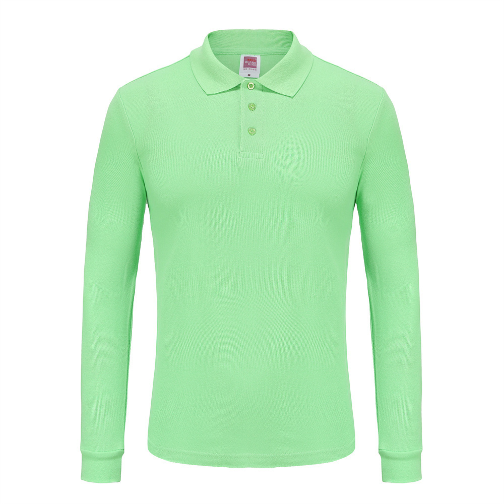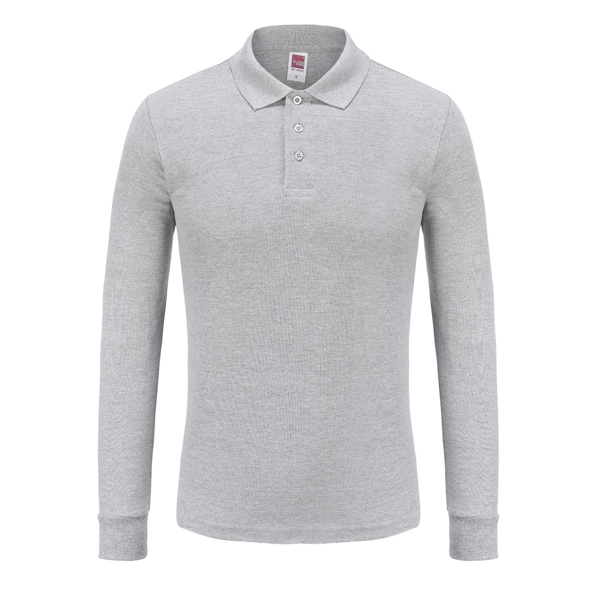 솔리드 컬러 킹 1AD01-220g 코튼 옷깃 긴팔 폴로 셔츠 남성 봄, 가을 느슨한 솔리드 컬러 작업복 맞춤 제작스토어 가기