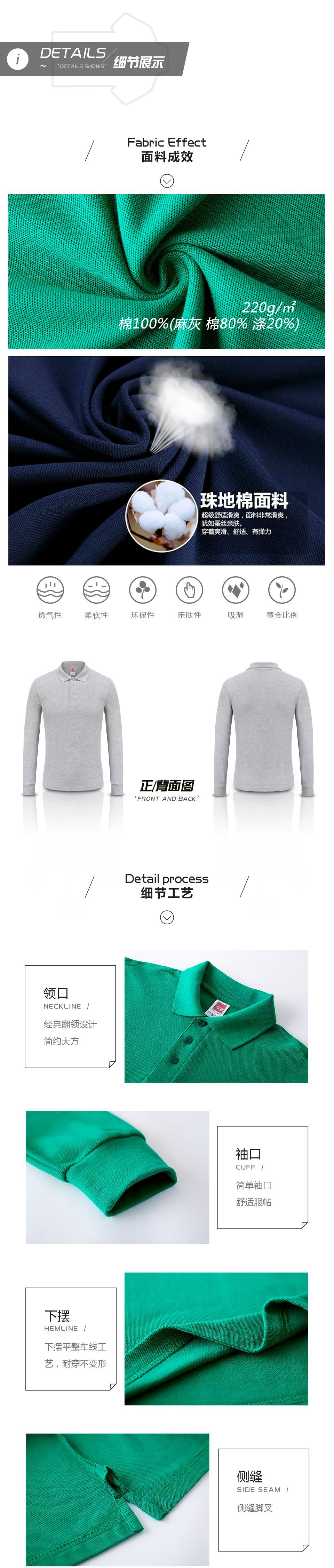 솔리드 컬러 킹 1AD01-220g 코튼 옷깃 긴팔 폴로 셔츠 남성 봄, 가을 느슨한 솔리드 컬러 작업복 맞춤 제작