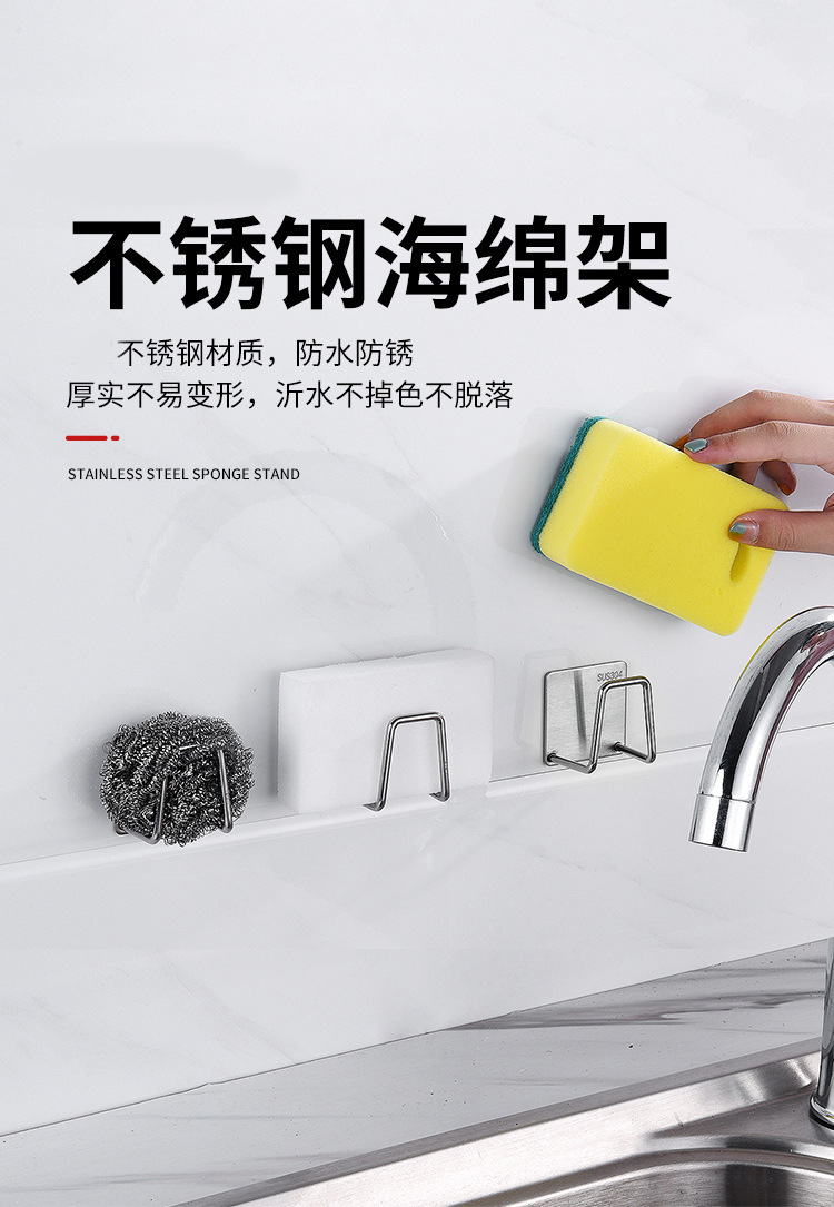 스테인레스 스틸 스폰지 보관 랙 펀치 프리 가정용 주방 용품 물 풀 스틸 와이어 볼 청소 천 배수 랙스토어 가기