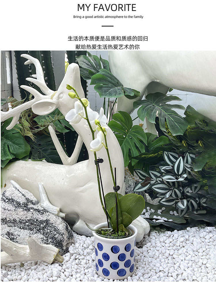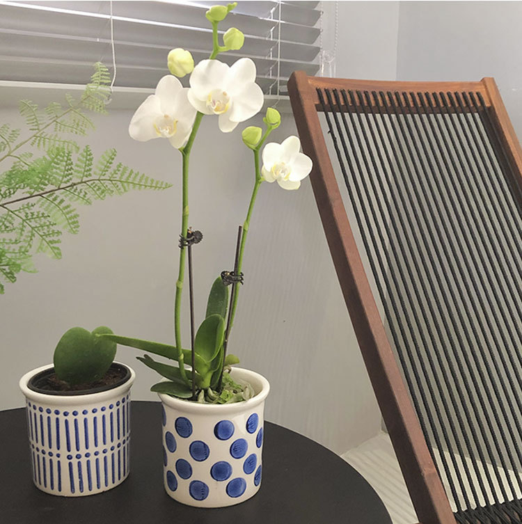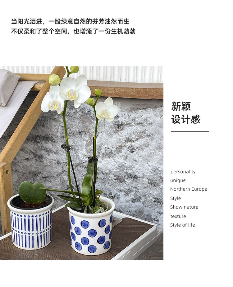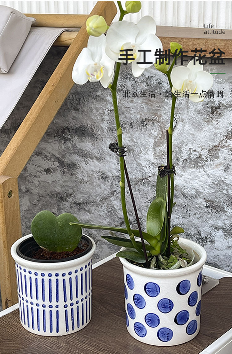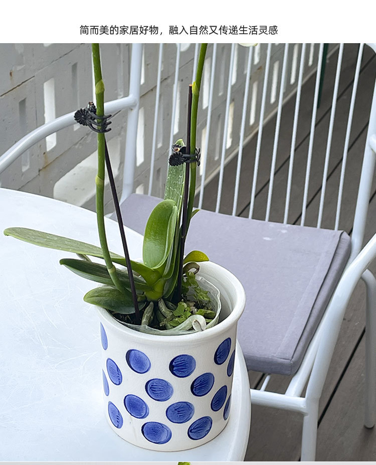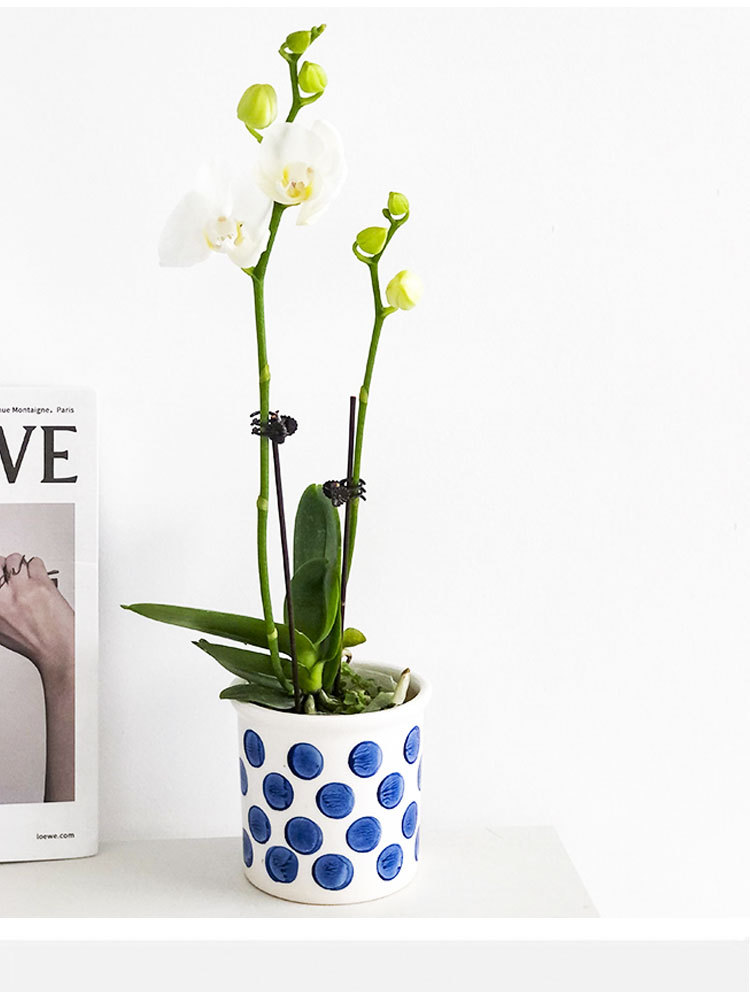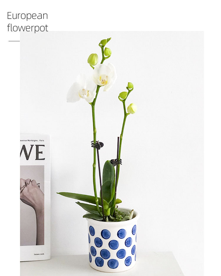 북유럽 인 모란디 지중해 블루 화이트 블루와 화이트 세라믹 화분 호접란 히아신스 통기성 녹색 식물