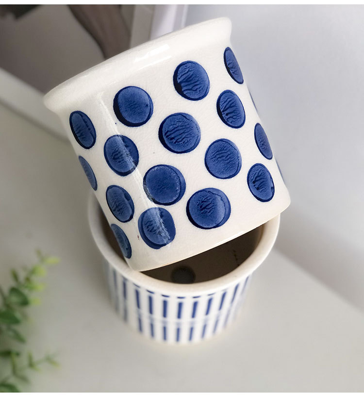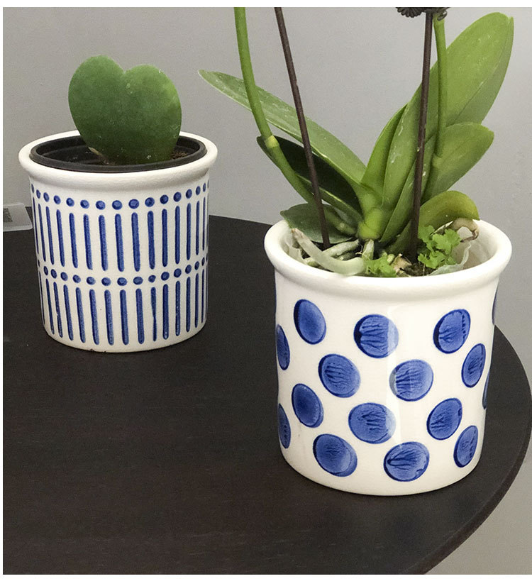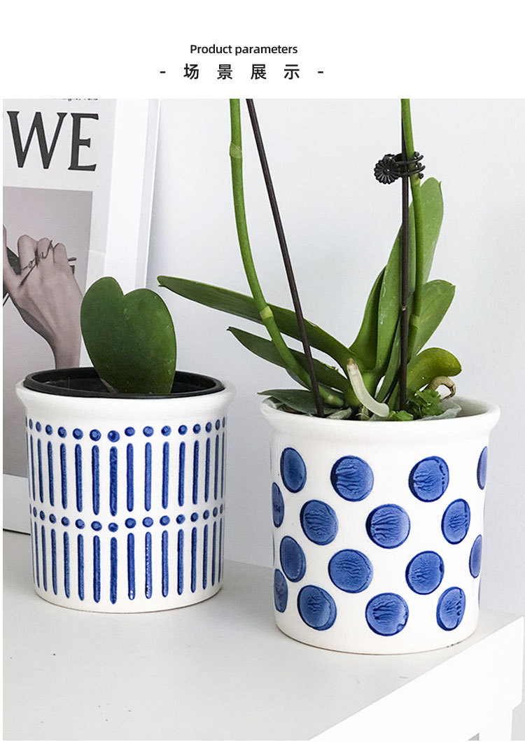북유럽 인 모란디 지중해 블루 화이트 블루와 화이트 세라믹 화분 호접란 히아신스 통기성 녹색 식물스토어 가기