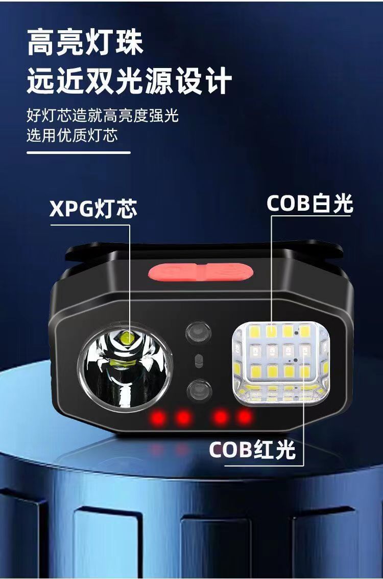 크로스 보더 밝은 전조등 야외 led 헤드 마운트 손전등 레드 충전 미니 낚시 유도 전조등 도매스토어 가기