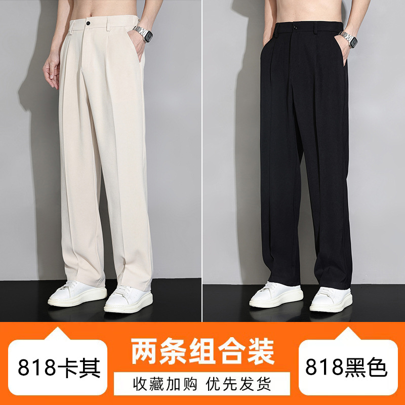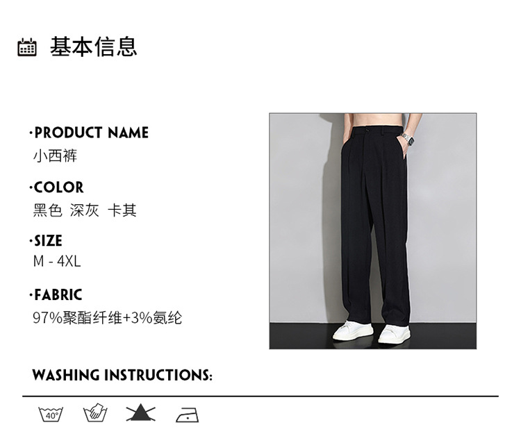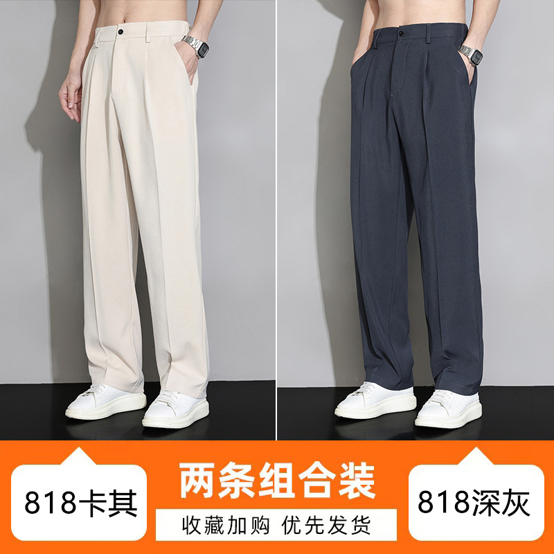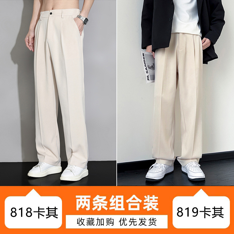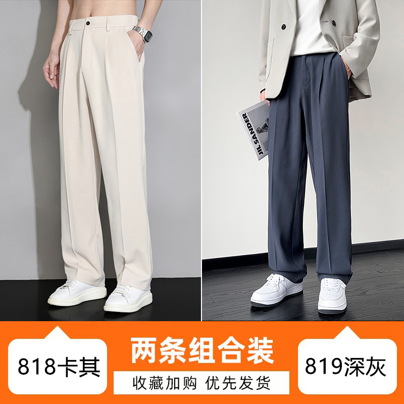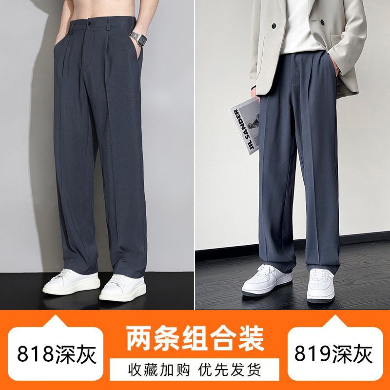 NASA 아이스 실크 작은 서양 바지 남자의 여름 얇은 와이드 다리 스트레이트 튜브 느슨한 캐주얼 바지 트렌디 세트 바지스토어 가기