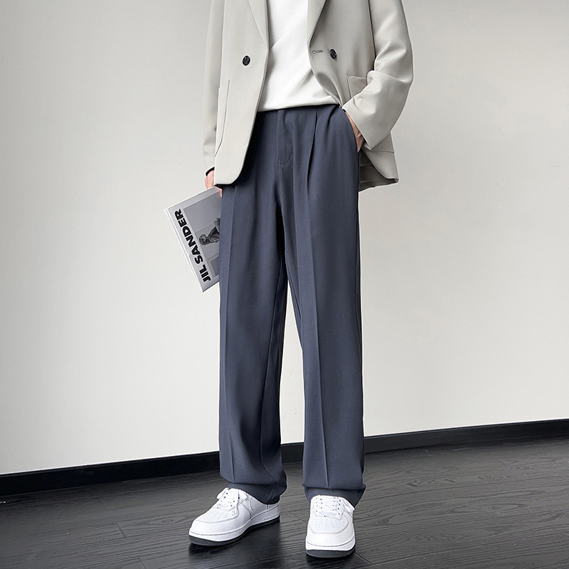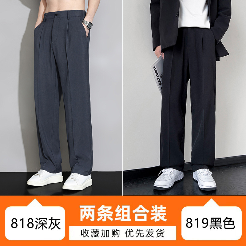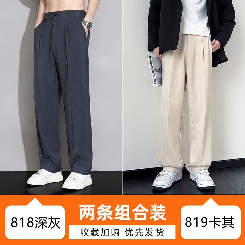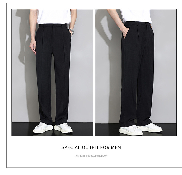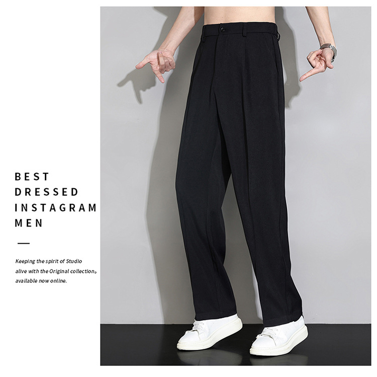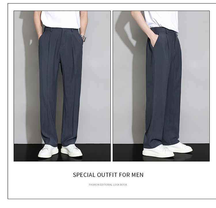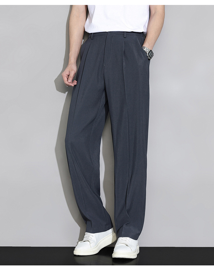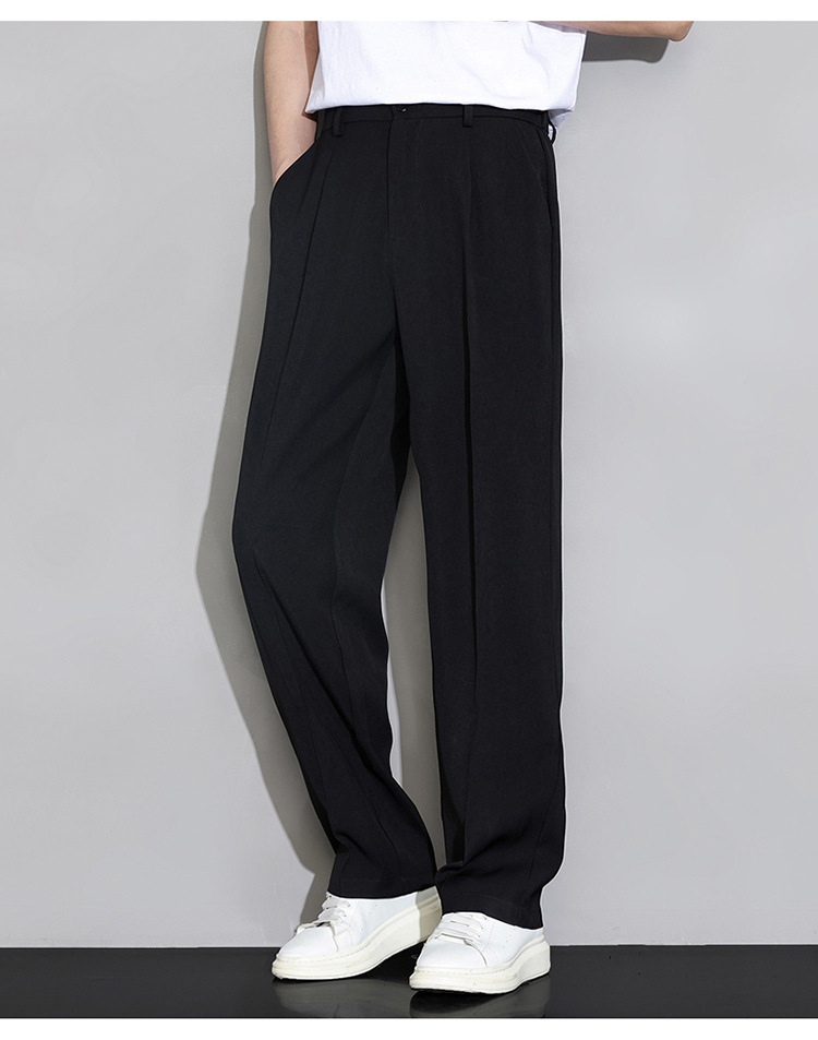 NASA 아이스 실크 작은 서양 바지 남자의 여름 얇은 와이드 다리 스트레이트 튜브 느슨한 캐주얼 바지 트렌디 세트 바지