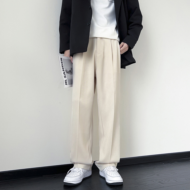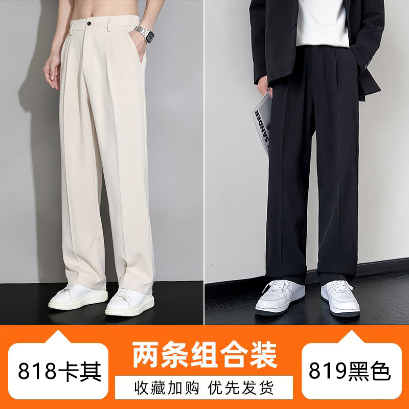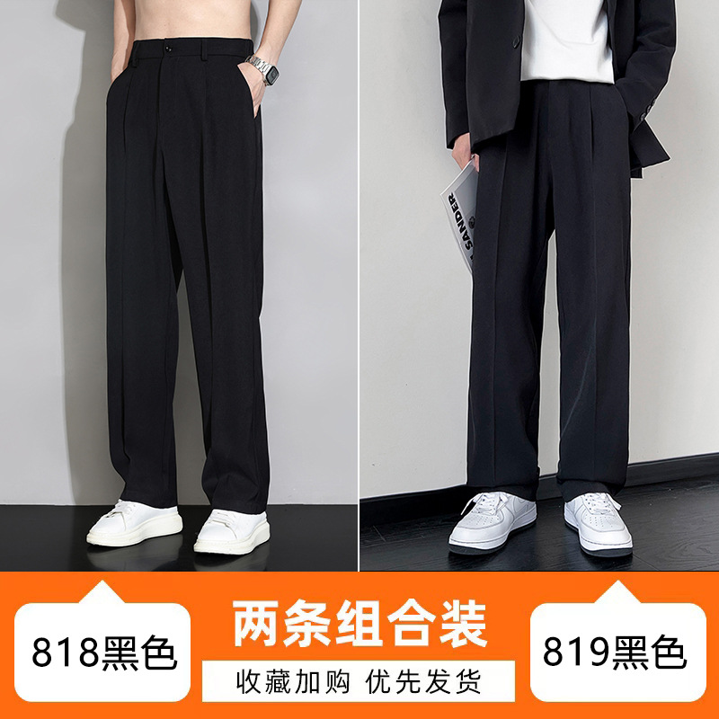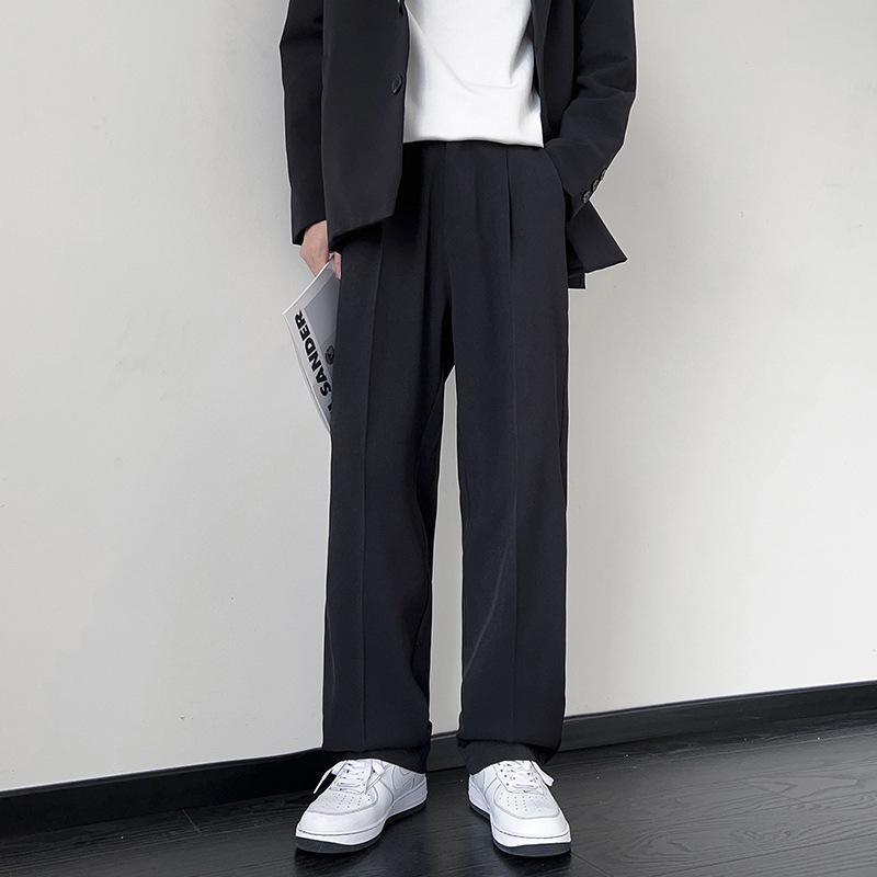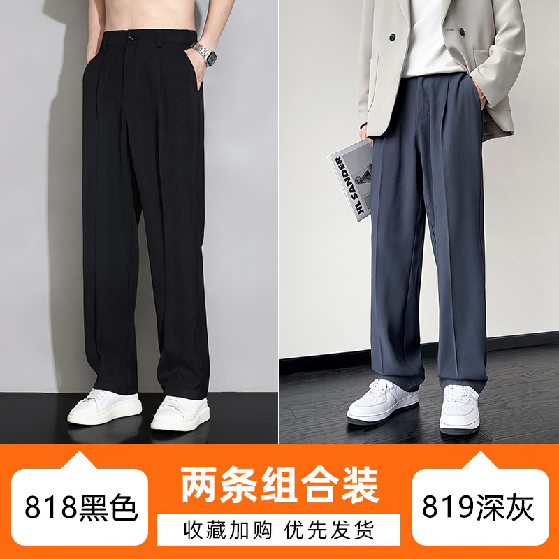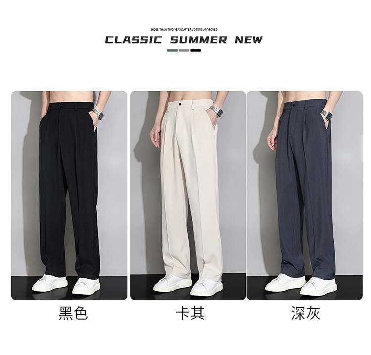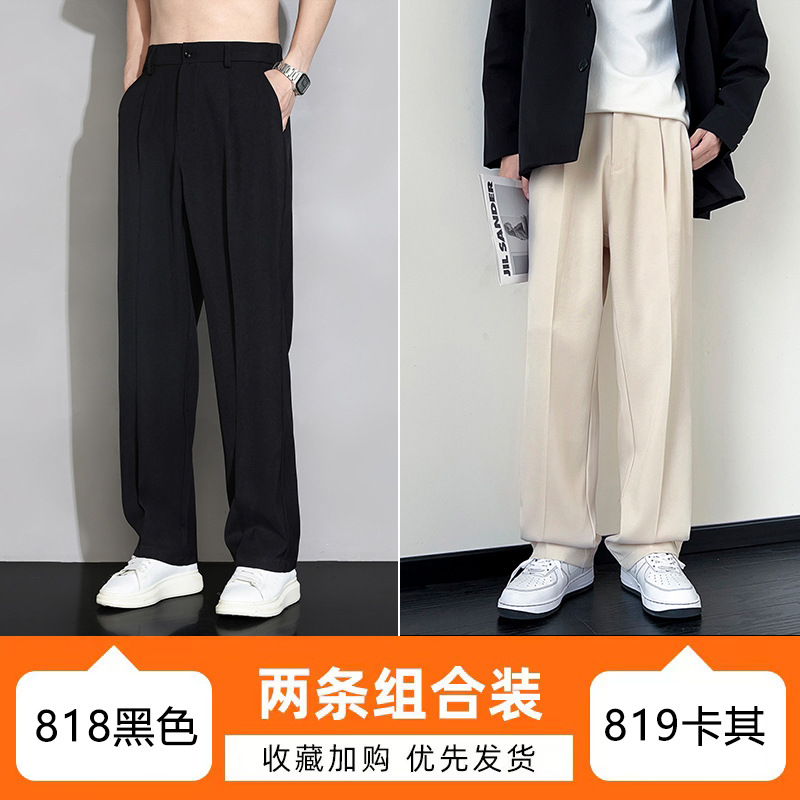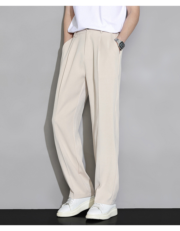 NASA 아이스 실크 작은 서양 바지 남자의 여름 얇은 와이드 다리 스트레이트 튜브 느슨한 캐주얼 바지 트렌디 세트 바지