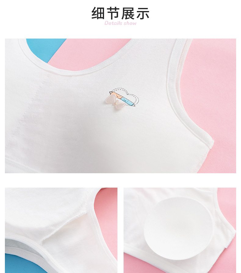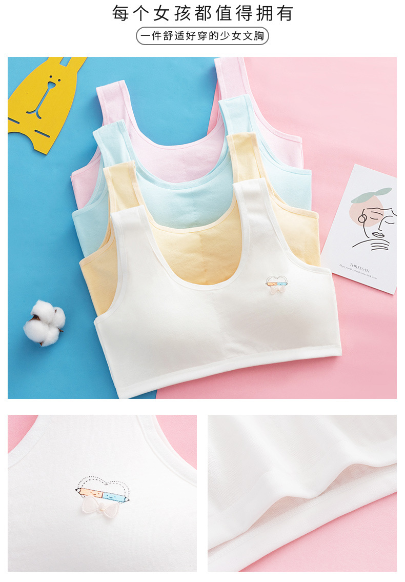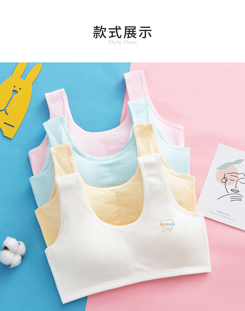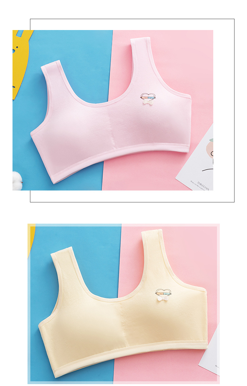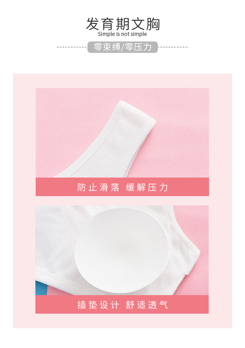 속옷 순면 중고등학생용 통기성 브라, 돌출방지, 고정형 조끼형, 여아용, 가슴패드 포함
