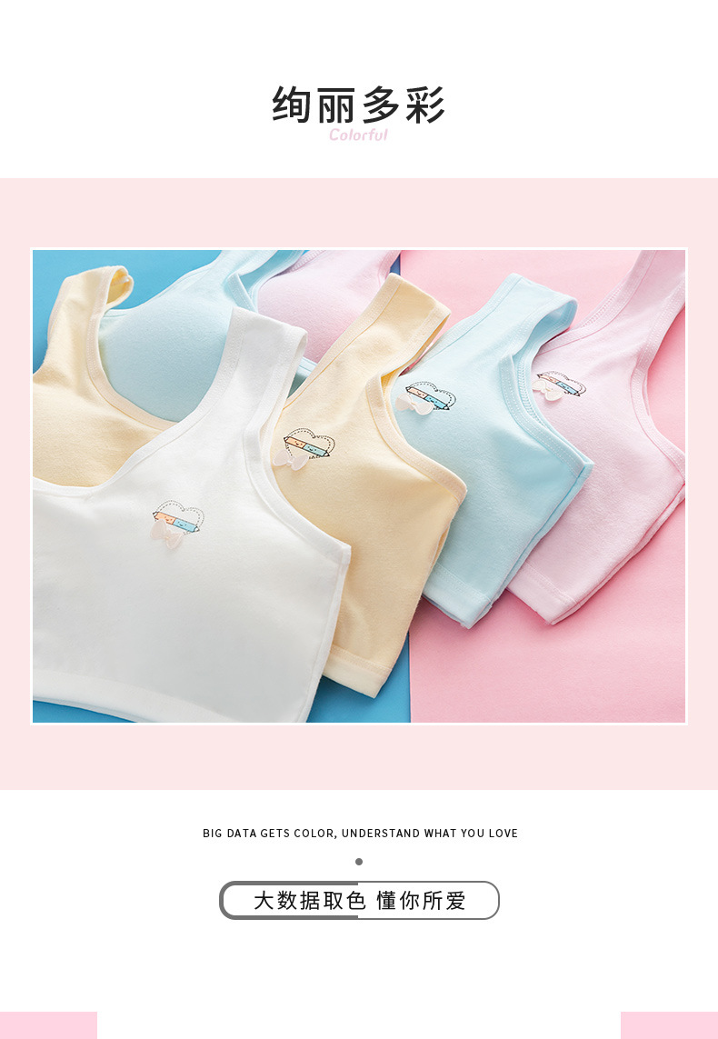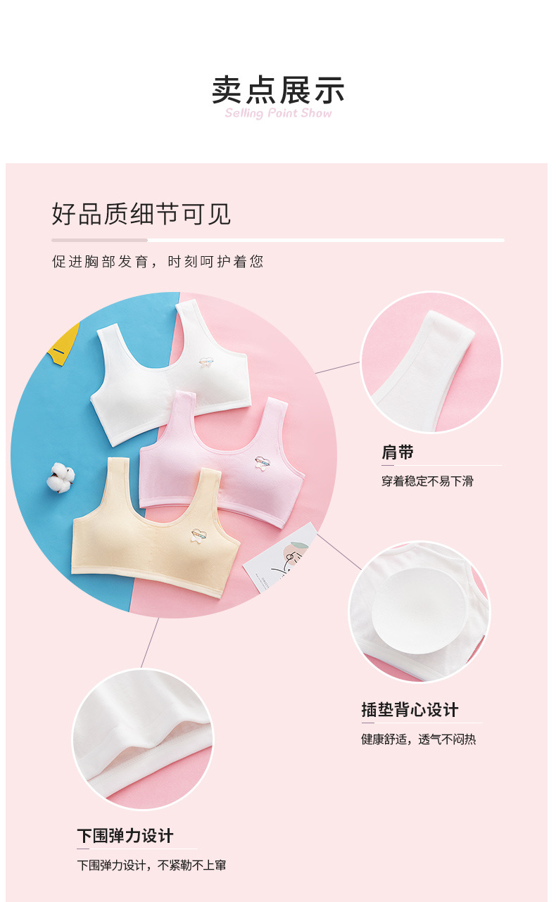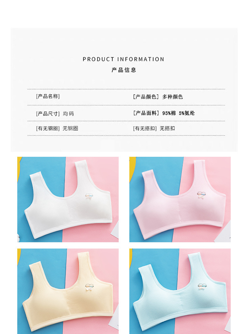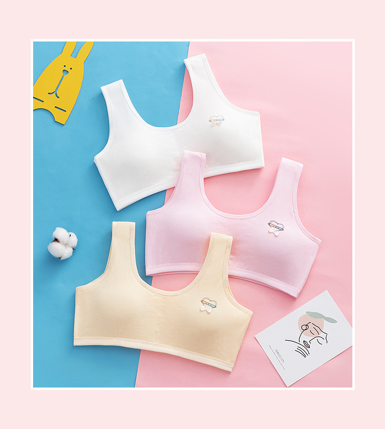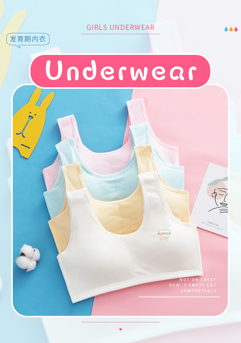 속옷 순면 중고등학생용 통기성 브라, 돌출방지, 고정형 조끼형, 여아용, 가슴패드 포함