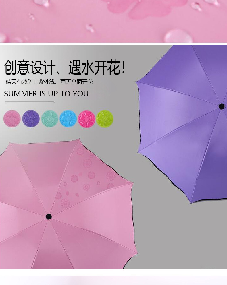 물에 닿으면 꽃 우산 도매 태양 보호 파라솔 접는 우산 비 또는 샤인 비닐 태양 우산