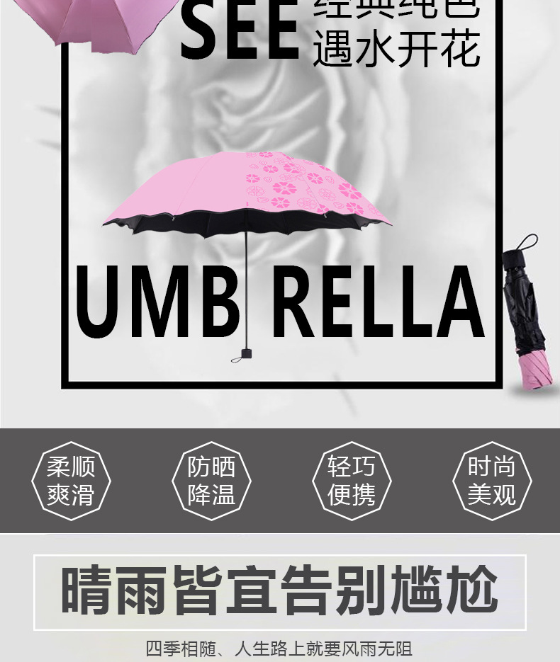 물에 닿으면 꽃 우산 도매 태양 보호 파라솔 접는 우산 비 또는 샤인 비닐 태양 우산스토어 가기