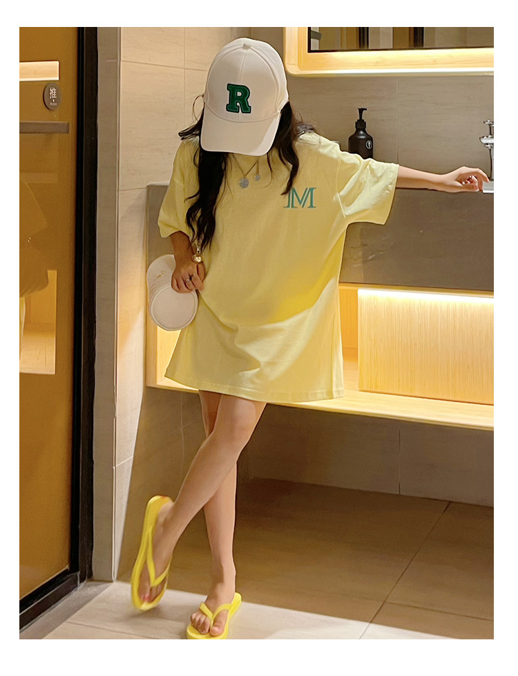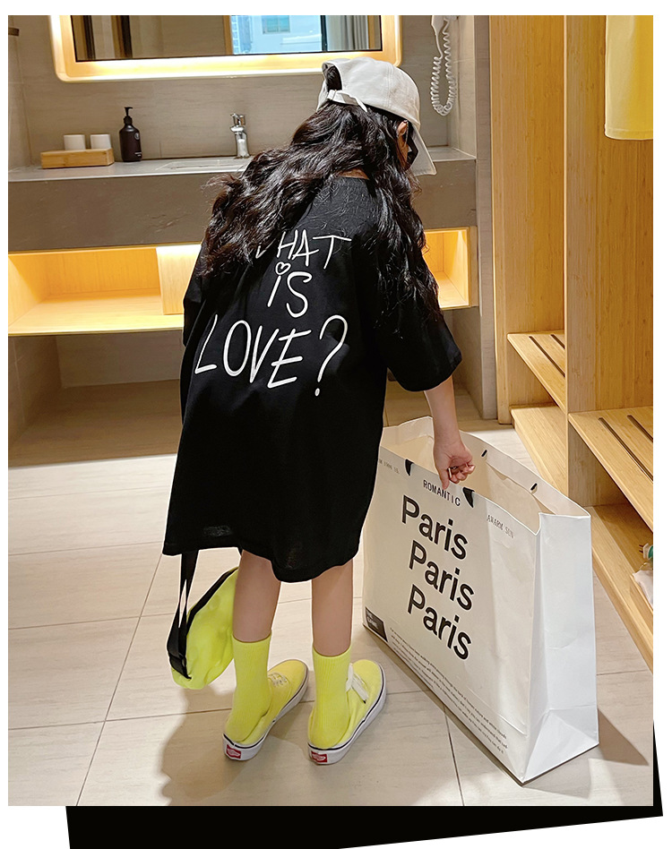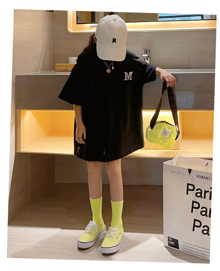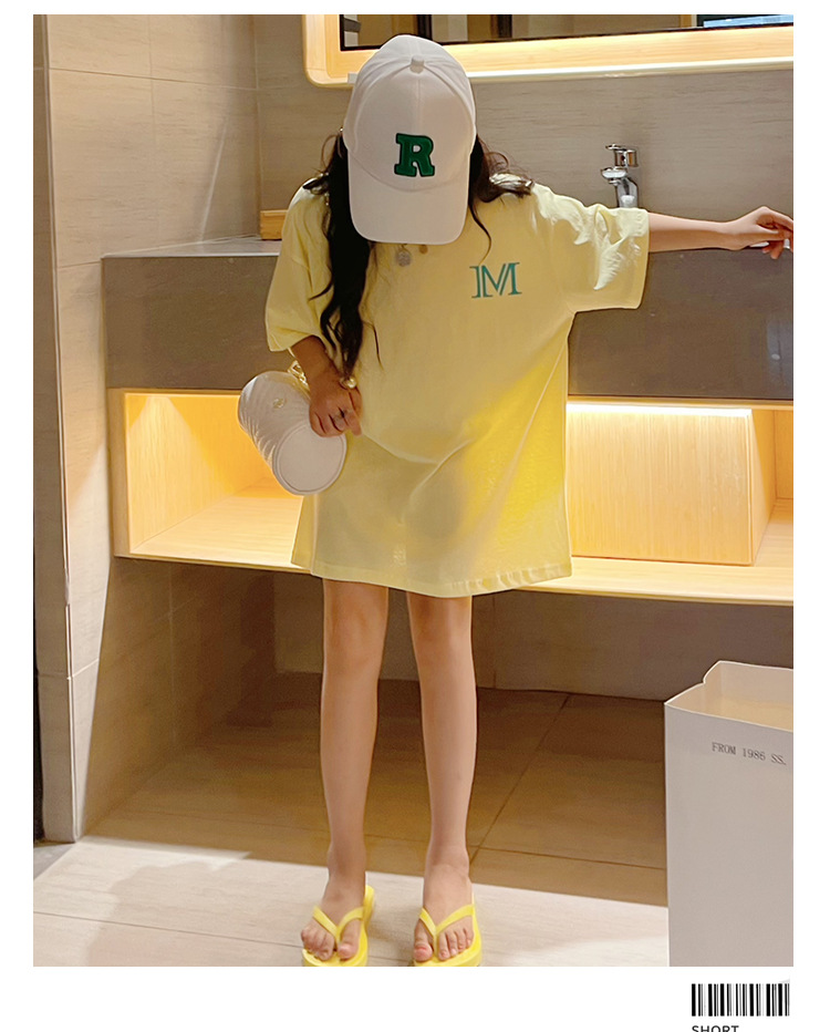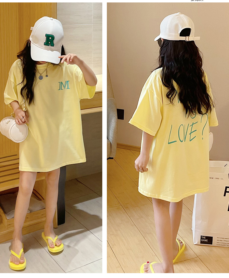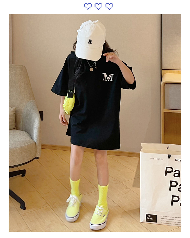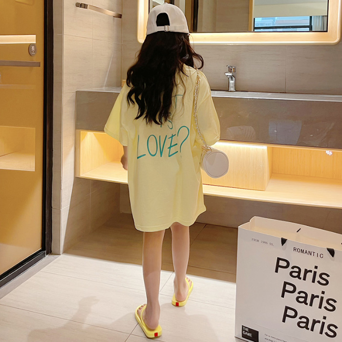 루즈한 면 반팔 티셔츠 여아 여름 2023 새로운 한국 스타일 웨스턴 스타일 중간 길이 여름 티셔츠 탑 트렌디스토어 가기