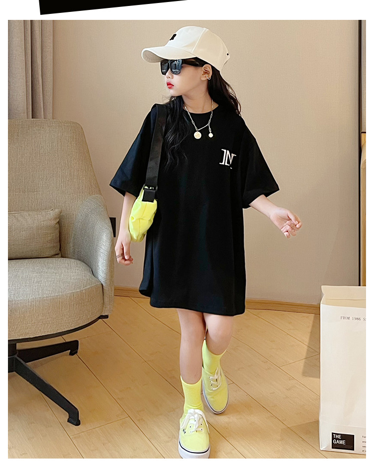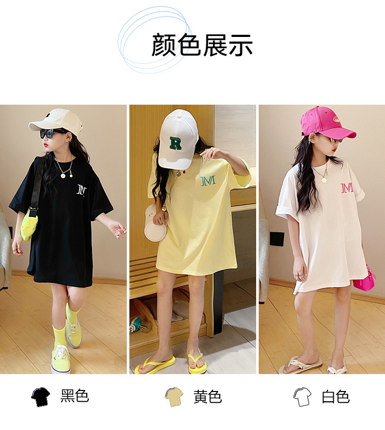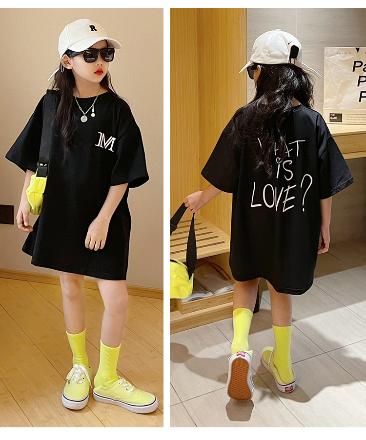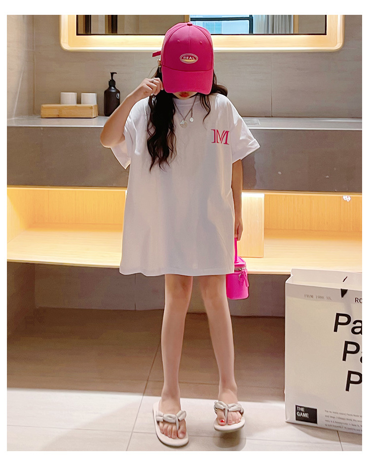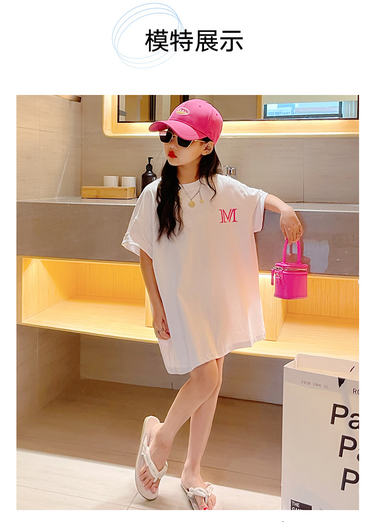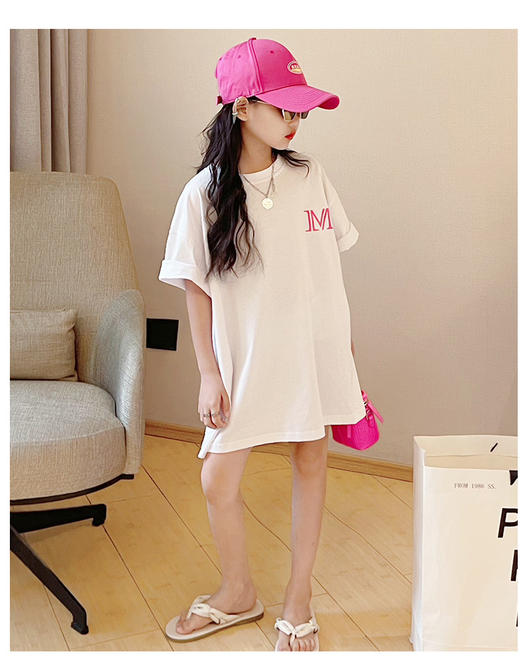 루즈한 면 반팔 티셔츠 여아 여름 2023 새로운 한국 스타일 웨스턴 스타일 중간 길이 여름 티셔츠 탑 트렌디