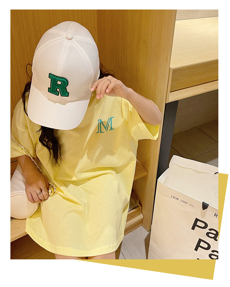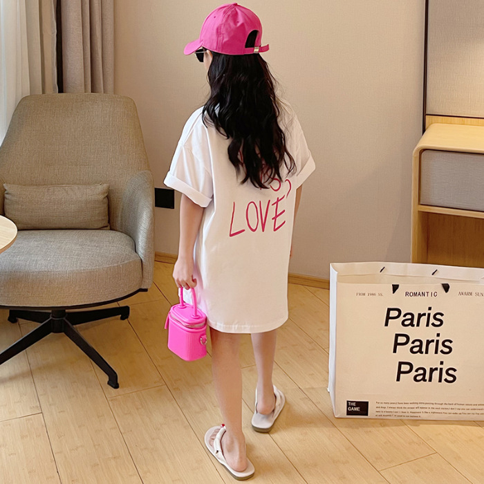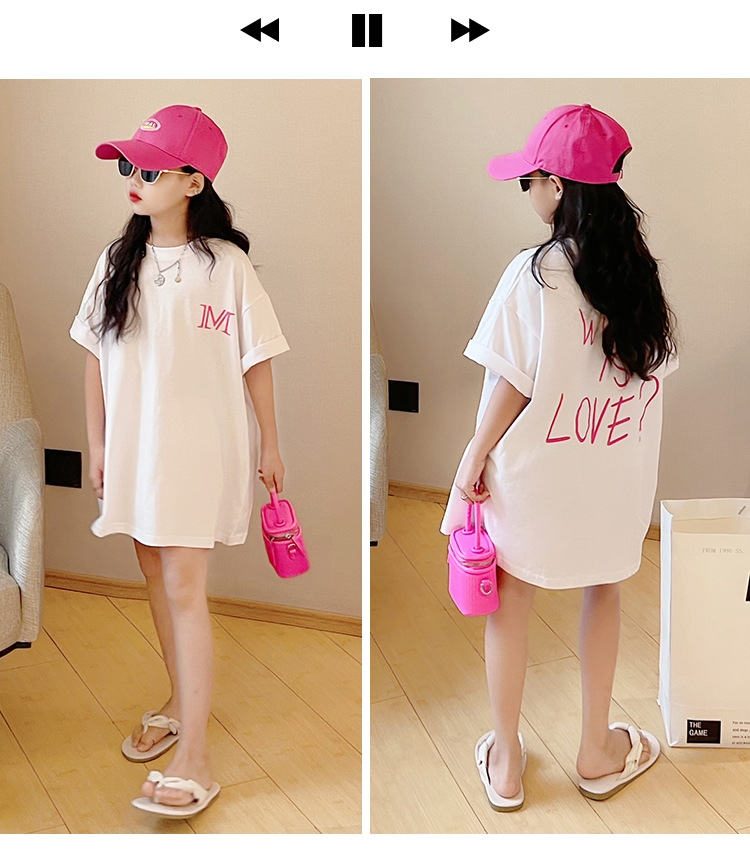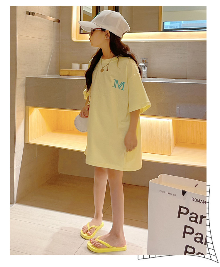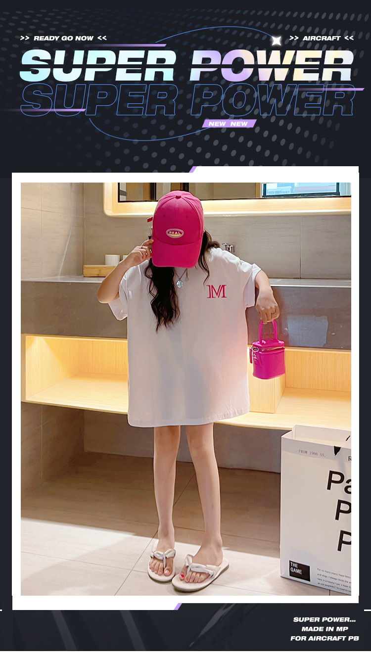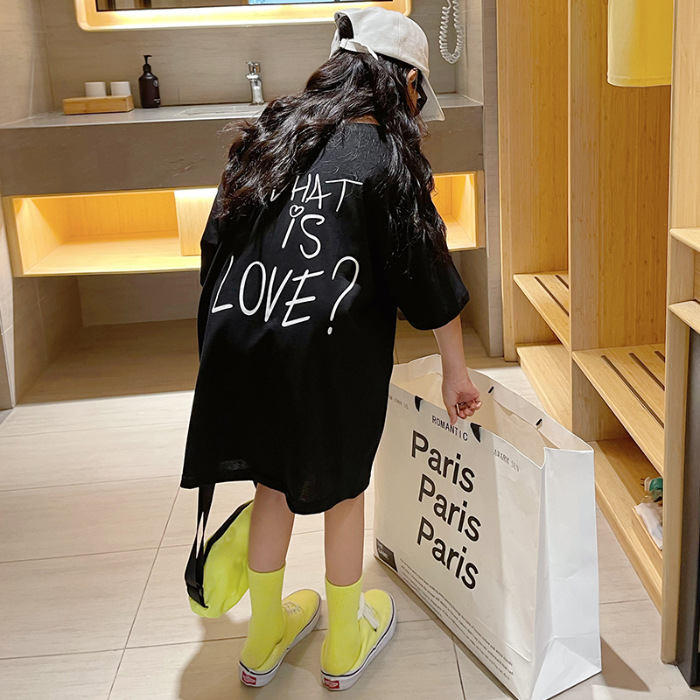 루즈한 면 반팔 티셔츠 여아 여름 2023 새로운 한국 스타일 웨스턴 스타일 중간 길이 여름 티셔츠 탑 트렌디