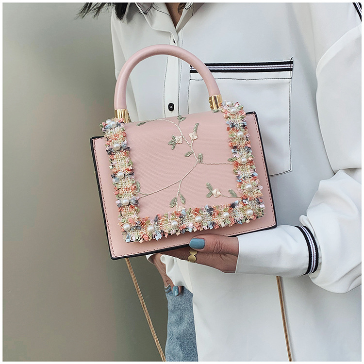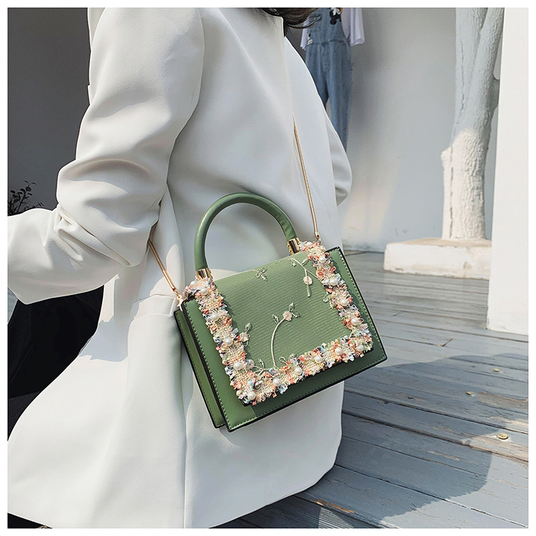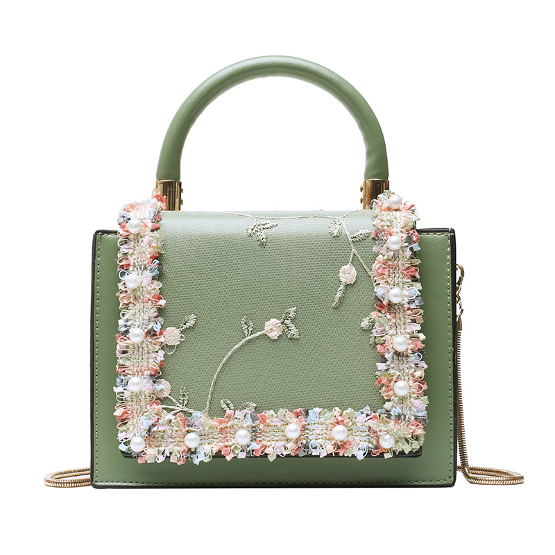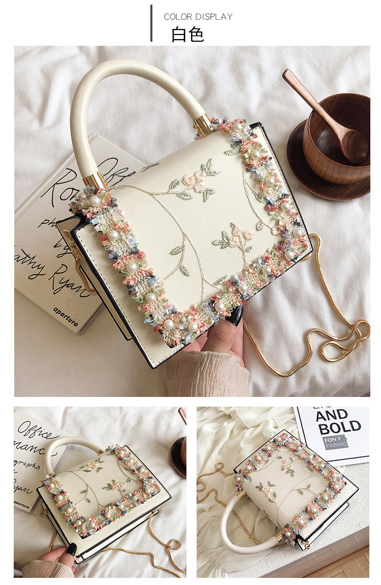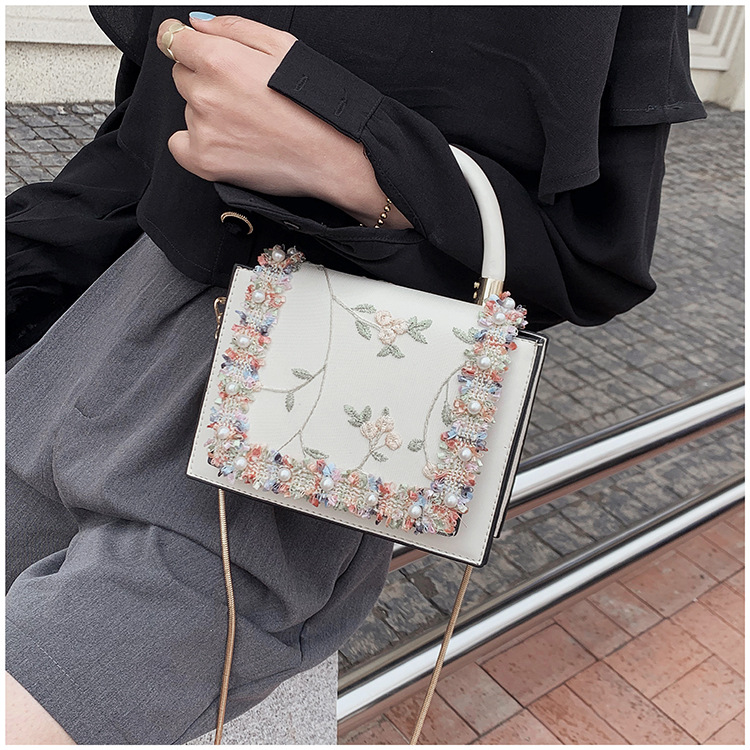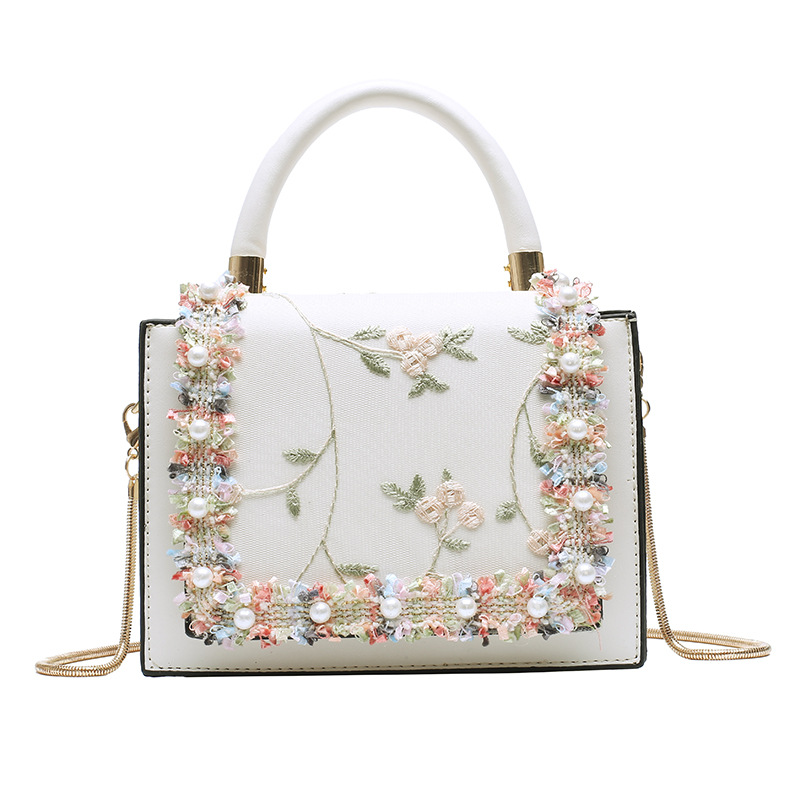 여성 가방 2023 새로운 한국 스타일 패션 레이스 진주 핸드백 심플 웨스턴 스타일 체인 숄더 크로스바디 스몰 스퀘어 백