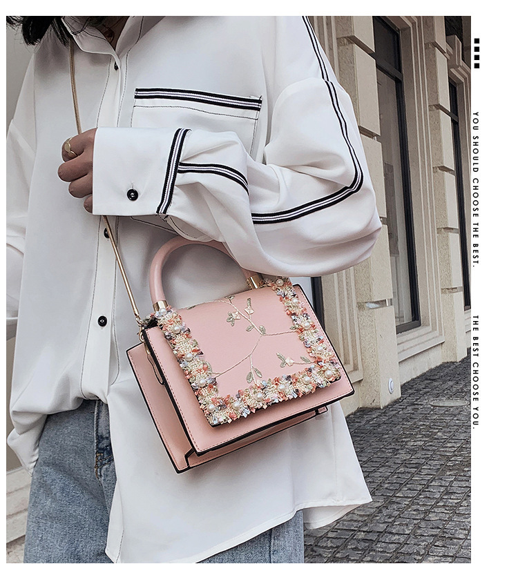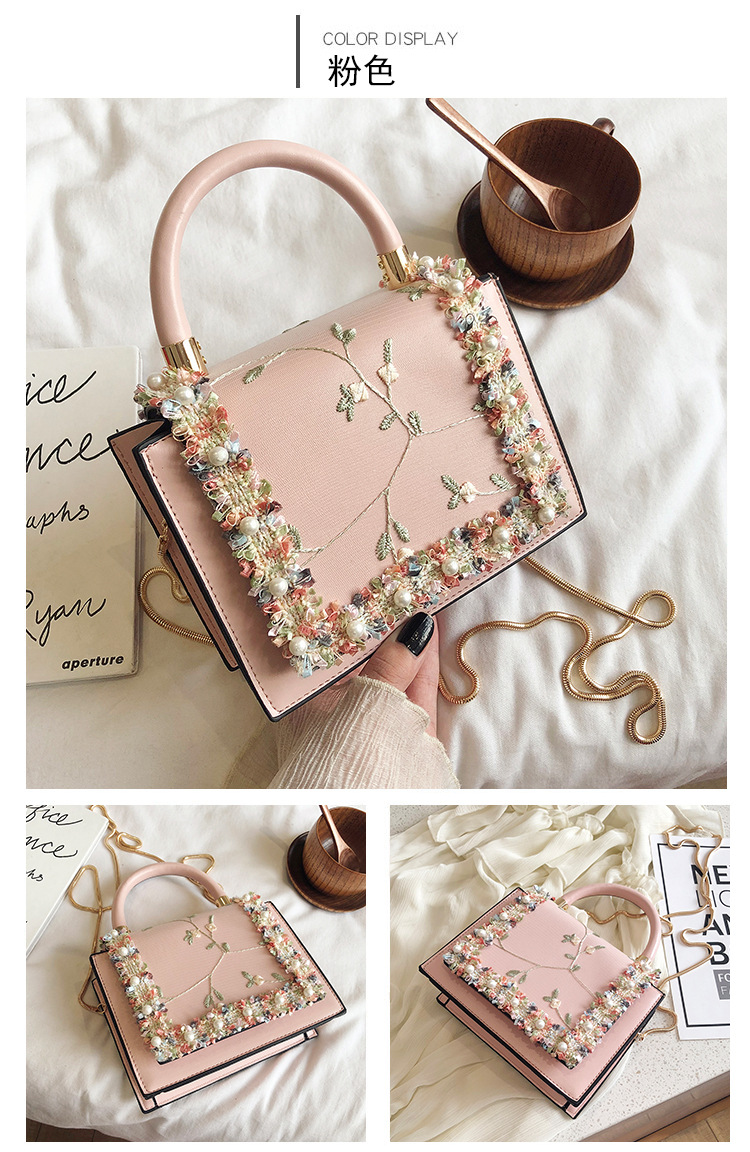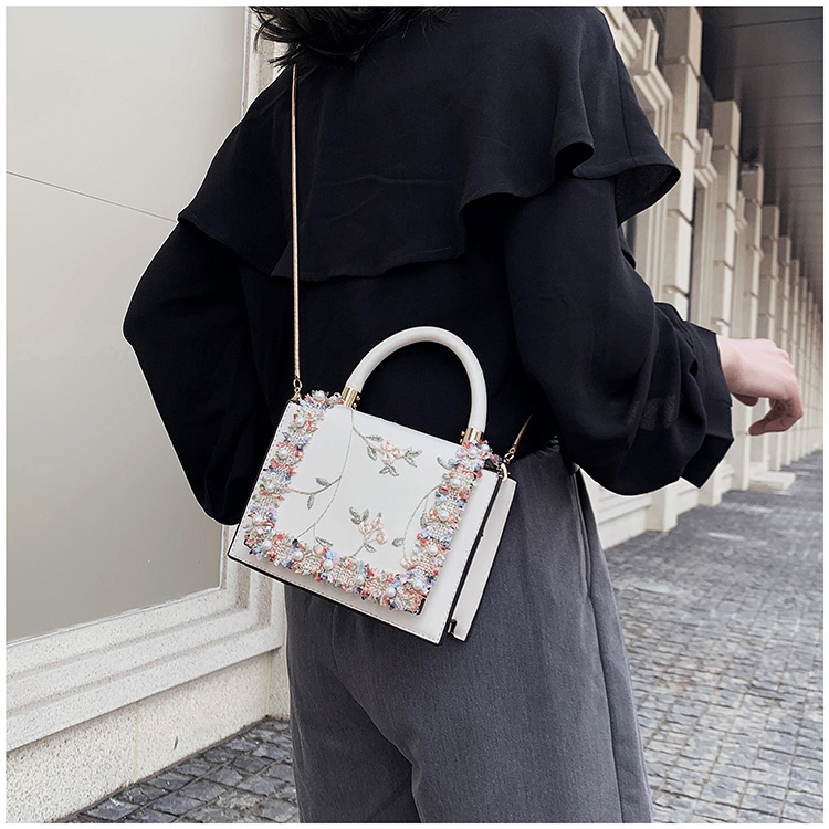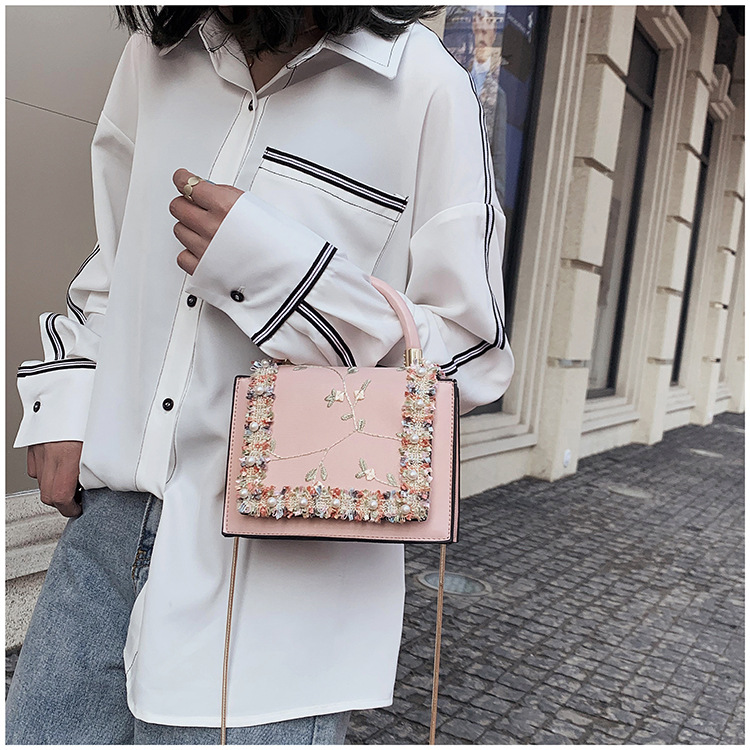 여성 가방 2023 새로운 한국 스타일 패션 레이스 진주 핸드백 심플 웨스턴 스타일 체인 숄더 크로스바디 스몰 스퀘어 백스토어 가기