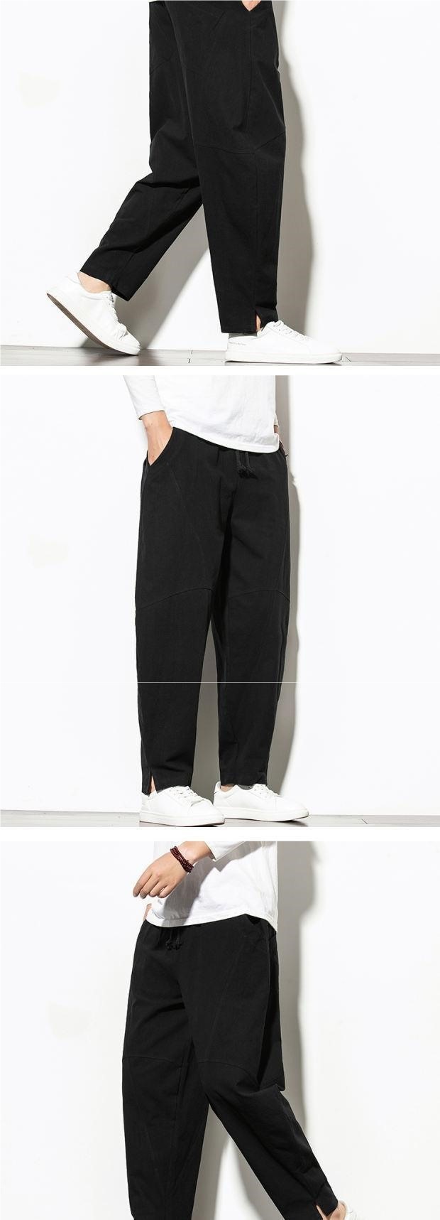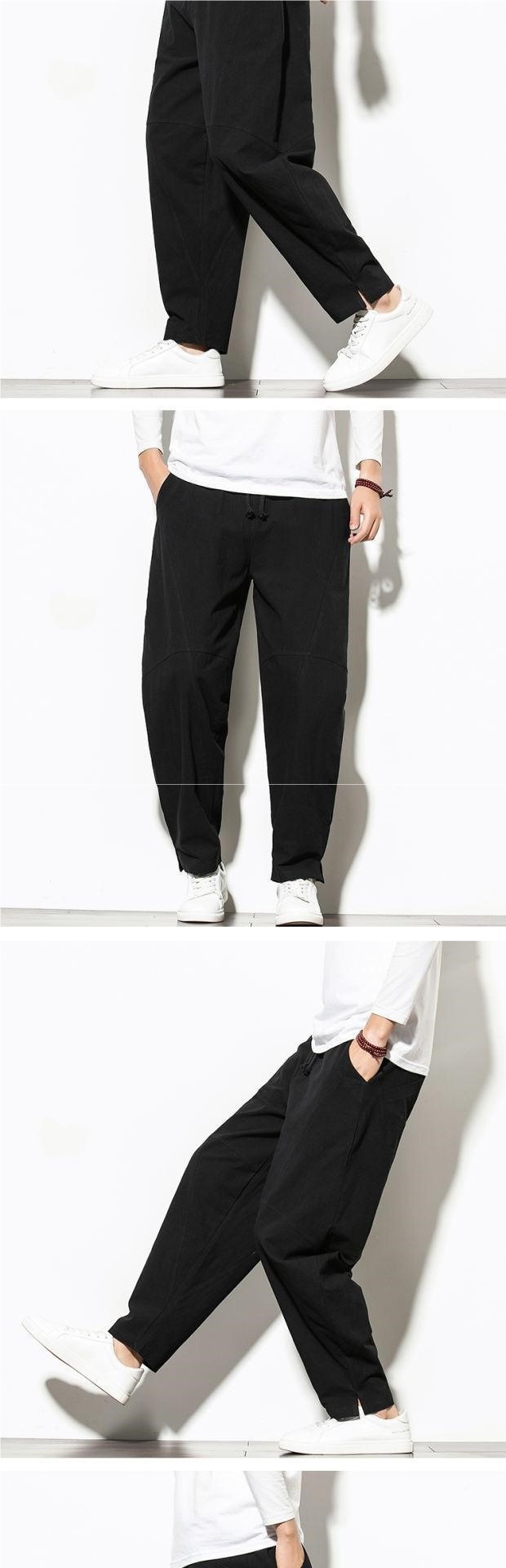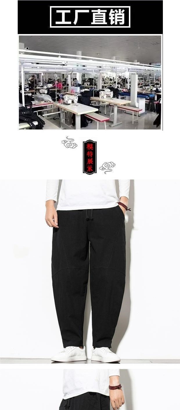 중국 스타일 남성 바지 느슨한 린넨 바지 캐주얼 봄과 여름 얇은 스트레이트 코튼 린넨 와이드 레그 하렘 팬츠 랜턴스토어 가기