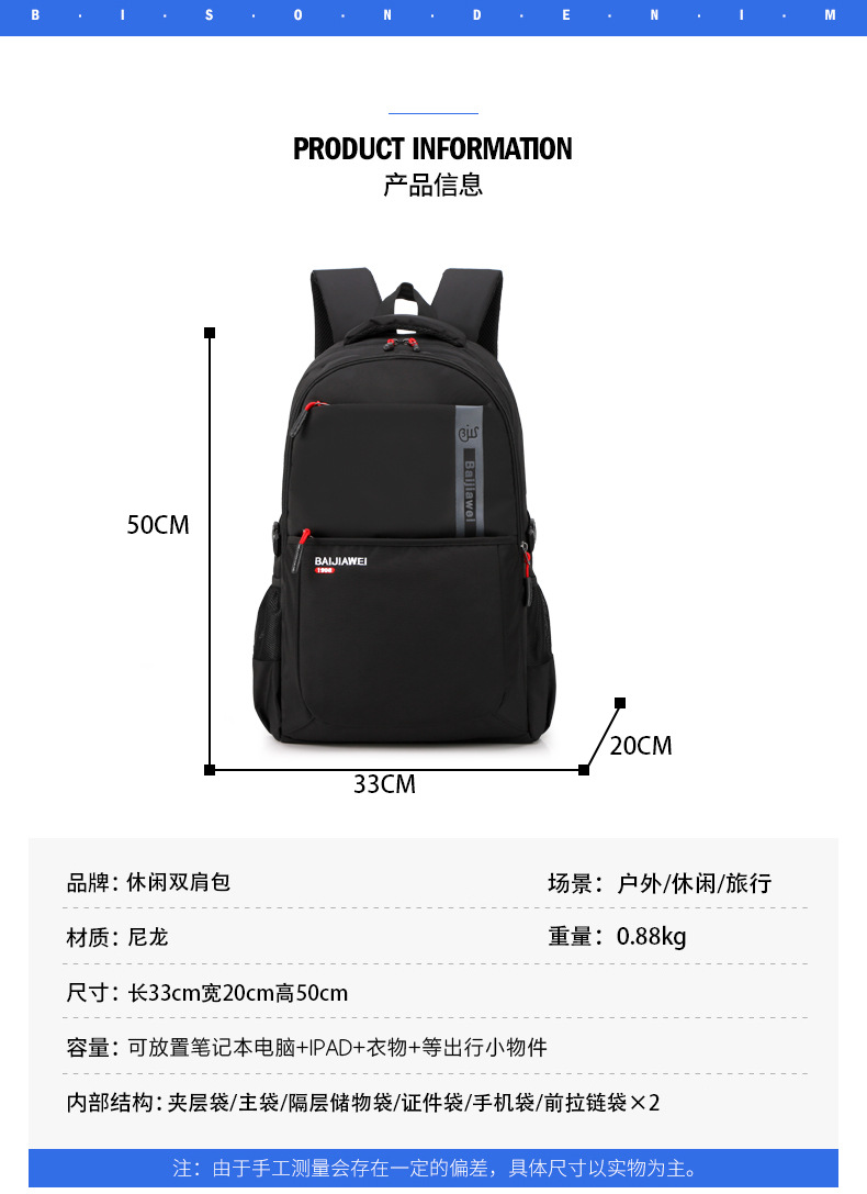 중학교 책가방 남자 패션 고등학생 한국 스타일 캐주얼 소년 배낭 캠퍼스 배낭 남성과 여성의 여행 가방스토어 가기