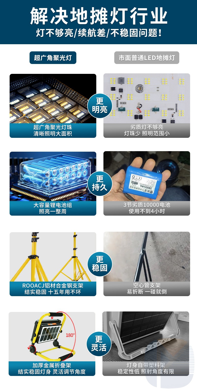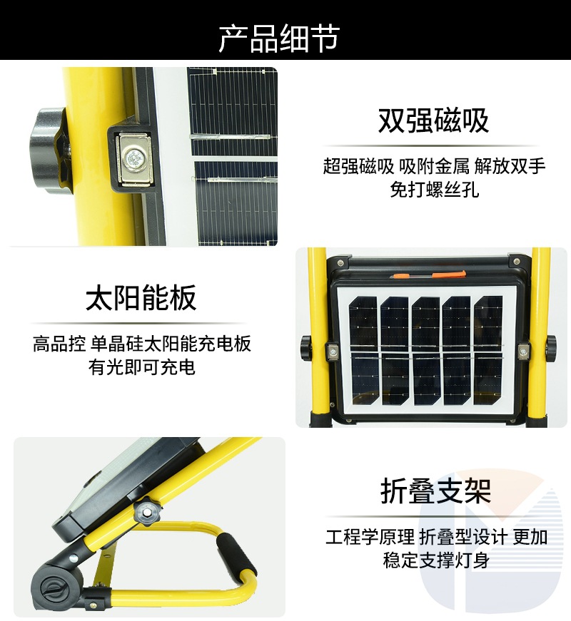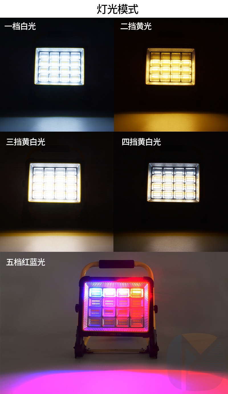 태양열 충전식 LED 경고 투광 조명 휴대용 야외 캠핑 작업등 야시장 노점 조명