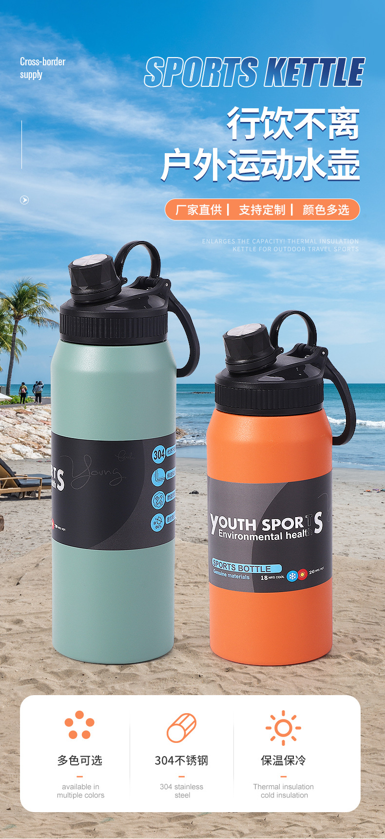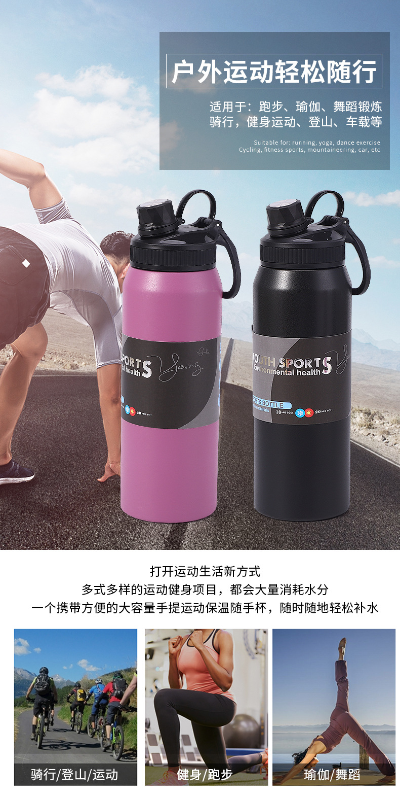 휴대용 야외 등산 여행 냄비 국경 간 공급 대용량 스포츠 주전자 스테인레스 스틸 휴대용 단열 공간 냄비스토어 가기